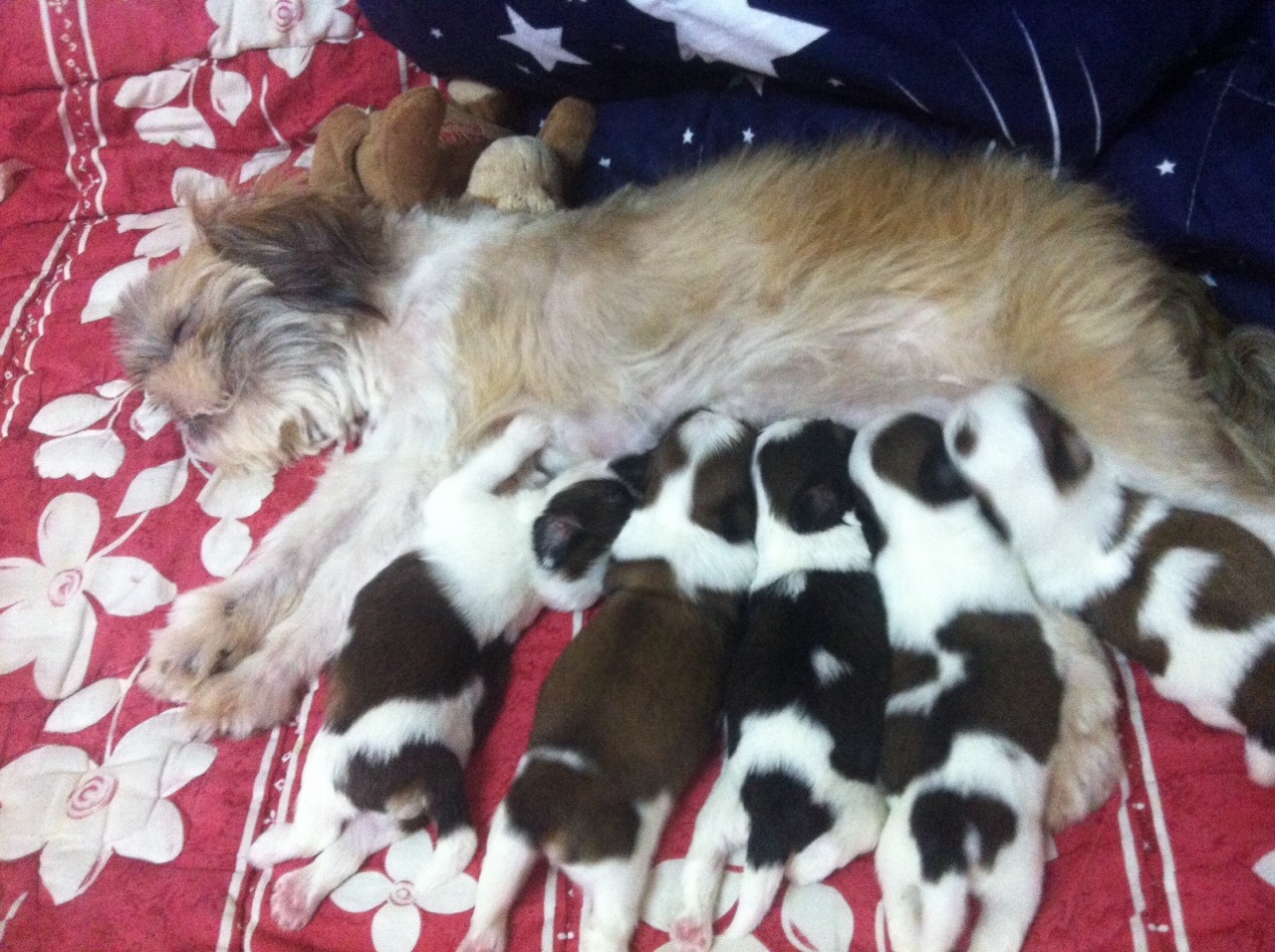 มีลูกหมาทั้งหมด 5 ตัว ชาย 2 หญิง 3 แข็งแรงและซนแสบทุกตัว