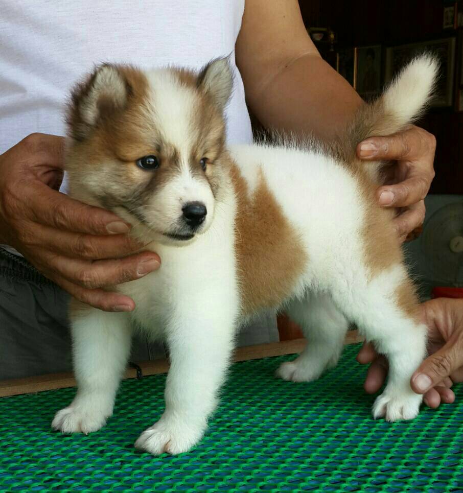 ลูกสุนัขเพศเมีย อายุ45 สีขาวน้ำตาล สวยมากๆ ขนฟู มีใบพันธุ์ประวัติรับประกัน
