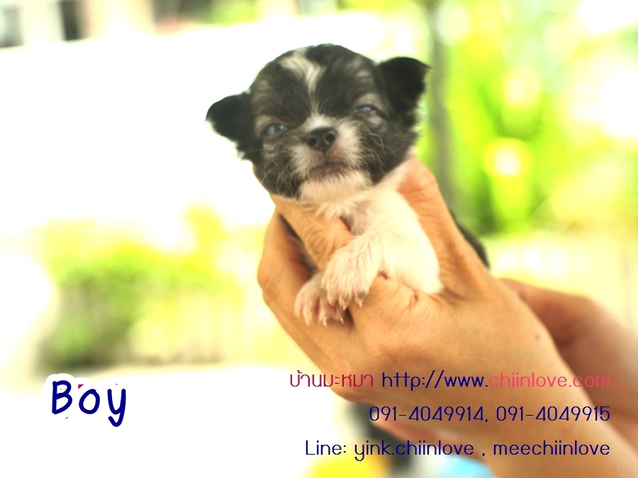 เด็กชายเฮงเฮง ชิวาวาขนยาว สีแฟนซี หัวเหม่งๆ