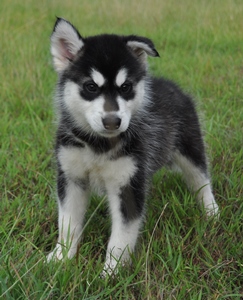 น้องหมาไซบีเรียน สีขาวดำ ลูกครึ่งอลาสกัน สไตล์โครงสร้างใหญ่ ราคาไม่แพง