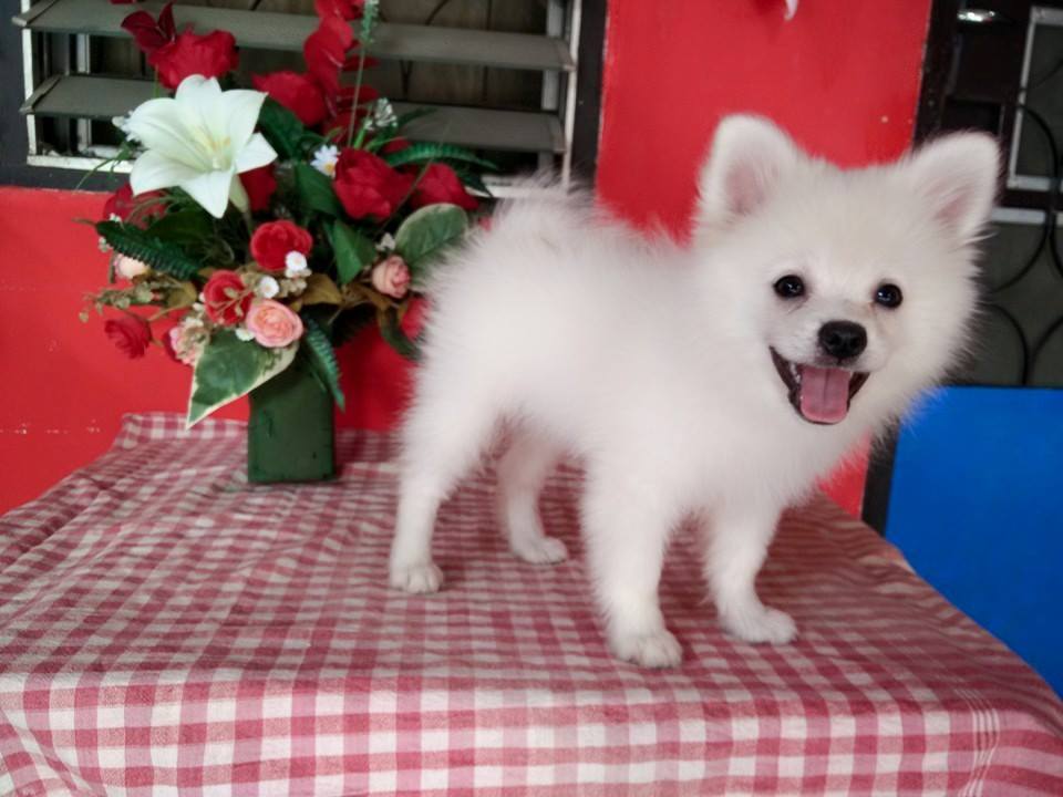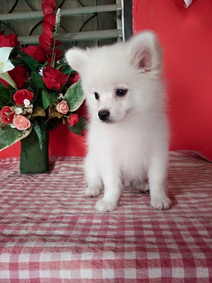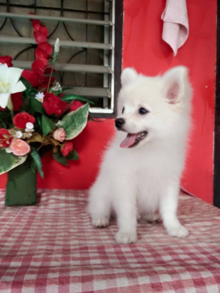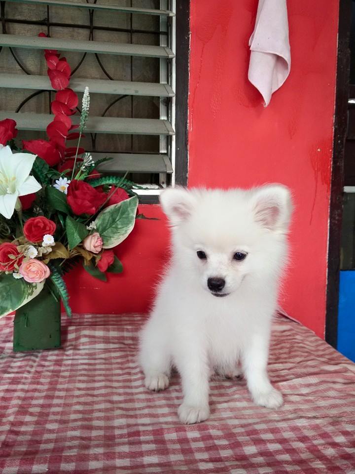 ปอมน้อยเพศผู้ตัวสุดท้ายจ๊ะสีขาว เกิด 5 มกราคม 58 น่ารักแข็งแรง ทานอาหารเองได้แล้วนะค่ะ พร้อมฉีดวัคซีนพร้อมย้ายบ้านจ๊ะ ลูกค้าที่อยู่ลำปางหรือจังหวัดใกล้เคียงมาดูเด็กๆได้ที่บ้านข้างเซนทรัลลำปางทางเรามีบริการจัดส่งทางรถไฟและเครื่องบินด้วยค่ะ