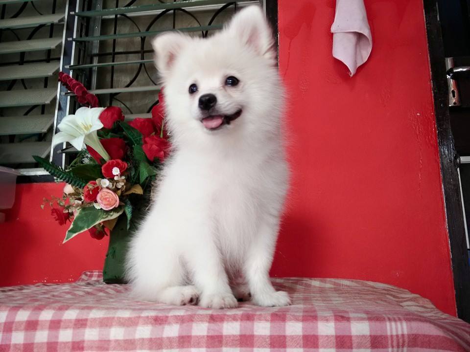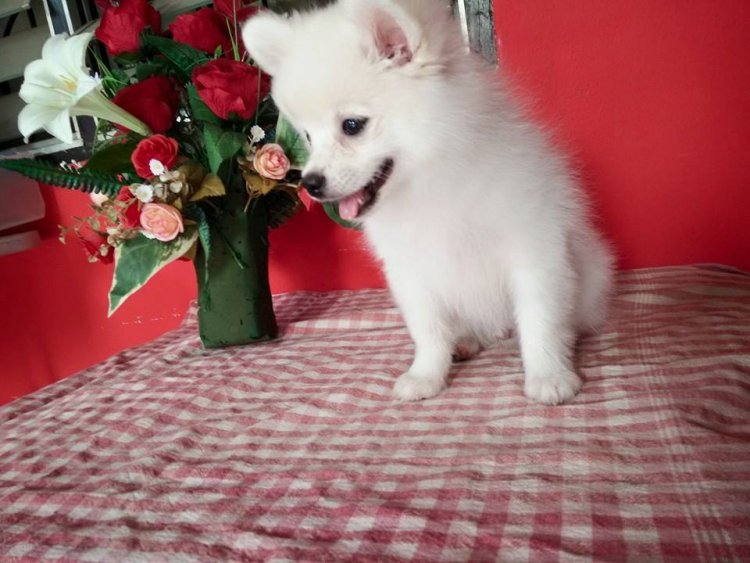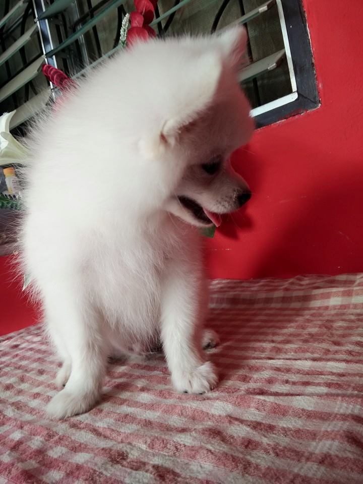 ปอมน้อยเพศผู้ตัวสุดท้ายจ๊ะสีขาว เกิด 5 มกราคม 58 น่ารักแข็งแรง ทานอาหารเองได้แล้วนะค่ะ พร้อมฉีดวัคซีนพร้อมย้ายบ้านจ๊ะ ลูกค้าที่อยู่ลำปางหรือจังหวัดใกล้เคียงมาดูเด็กๆได้ที่บ้านข้างเซนทรัลลำปางทางเรามีบริการจัดส่งทางรถไฟและเครื่องบินด้วยค่ะ