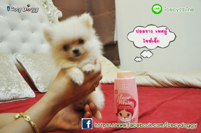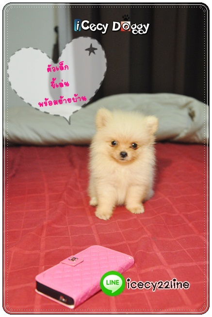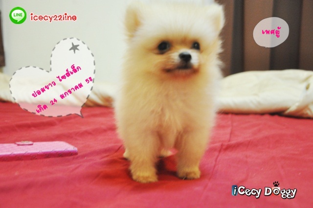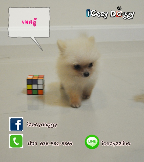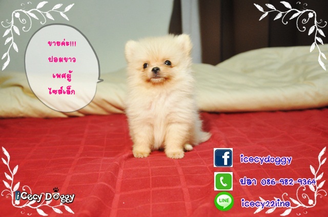 IcecyDoggy ขายลูกปอมสีขาว เพศผู้ อายุ 2 เดือน ตัวเล็กมาก ขนแน่นมาก
