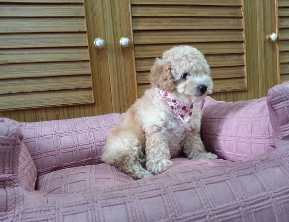 พุดเดิ้ล หน้าตุ๊กตา ตาดำ จมูกดำ สวย สีแอปปิคอท ขนแน่น หยิก