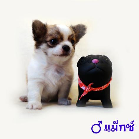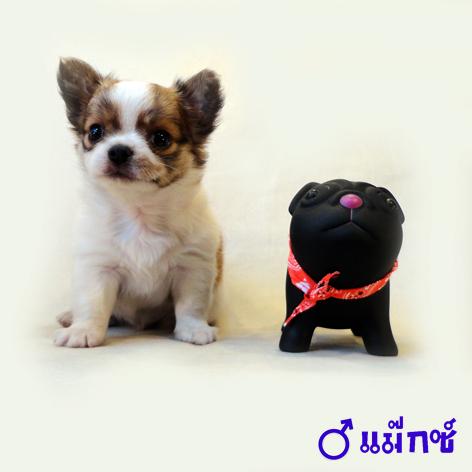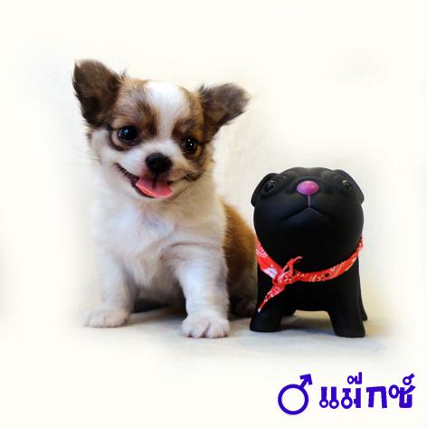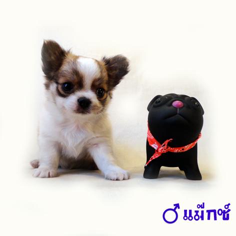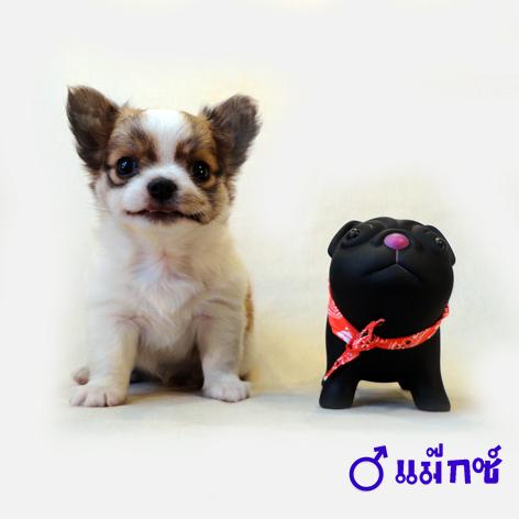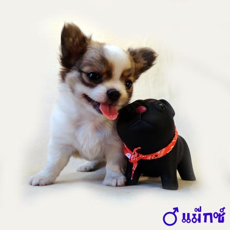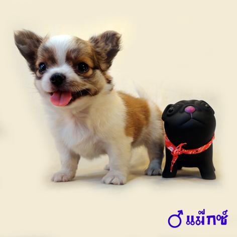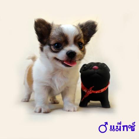 ชิวาวาขนยาวเพศผู้ สายญี่ปุ่นหัวโต มาร์คกิ้งชัด สีแฟนซี่ ขาว–น้ำตาล