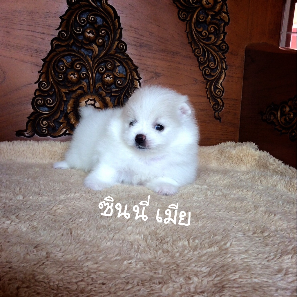 ปอมเมอเรเนี่ยนแท้ สีขาว เพศเมีย4สาว ไซส์เล็ก สุขภาพดี จัดส่งได้