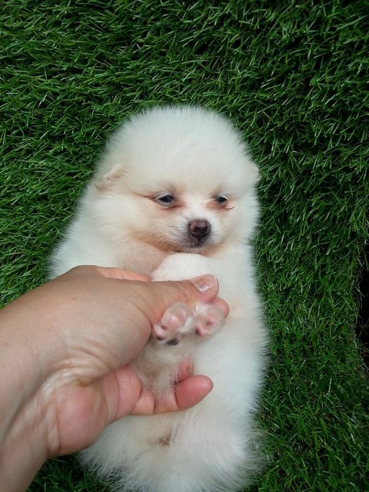 หนู๋เป็นสาวแย้ว...ตัวเล็กสีขาว.. คุงแม่บอกว่าค่าตัว 8500 จ้า มีตัวเดยวจ้าปอมน้อยเพศเมียฟอร์มเลี้ยงเล่น สีขาว มีครีมปนเล็กน้อย น่ารัก เกิด 15 มีนาคม 58 น่ารักแข็งแรง ทานอาหารเองได้แล้วนะค่ะ พร้อมย้ายบ้านจ๊ะ ลูกค้าที่อยู่ลำปางหรือจังหวัดใกล้เคียงมาดูเด็กๆได้ที่บ้านข้างเซนทรัลลำปางทางเรามีบริการจัดส่งและส่งทางเครื่องบินด้วยค่ะ