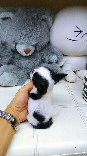 สีขาวมาร์คดำ หน้าสั้นมาก หัวแอปเปิ้ลสวย ปากใหญ่ อายุ 2เดือน