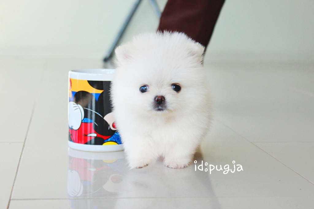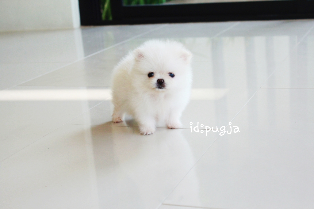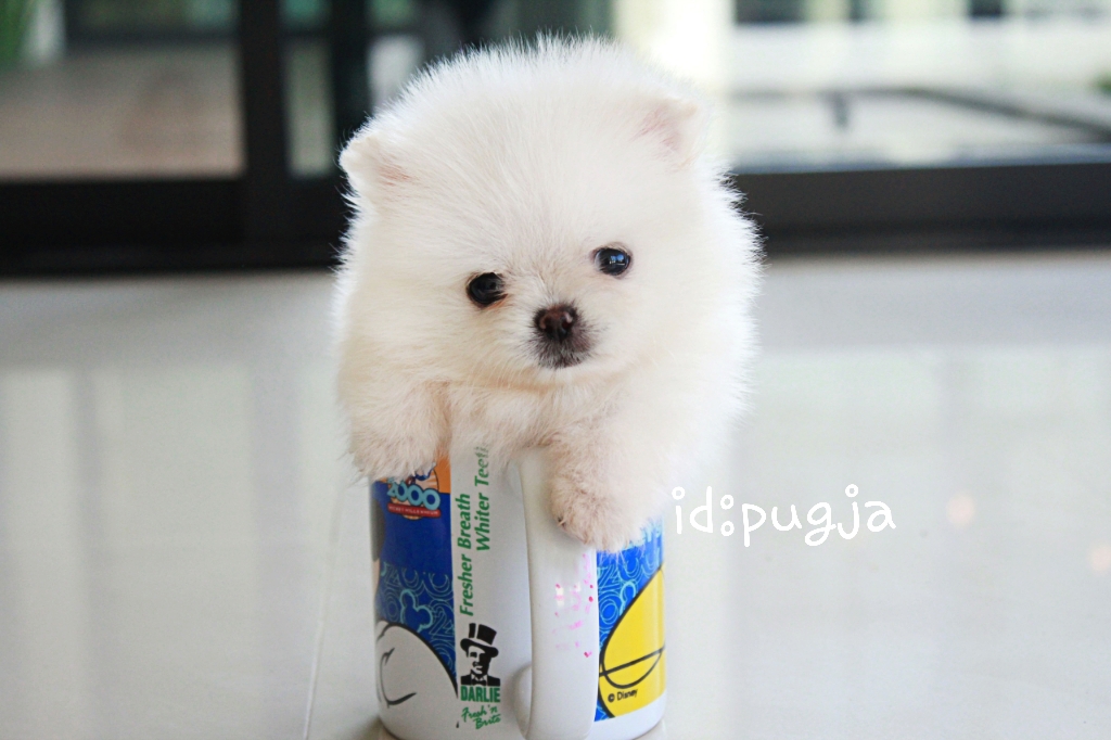 ปอมเมอเรเนี่ยนแท้ ฟรอมดี ทีคัพแท้ สีขาวสำลี เพศเมีย อายุ 46 วัน กินอาหารเม็ดแล้ว สนใจทักไลน์ pugja โทร 0839521646