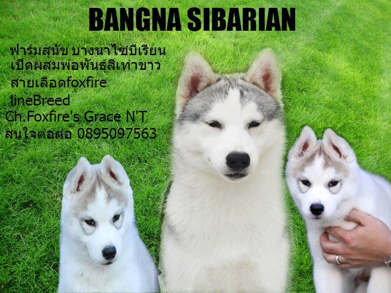 ฟาร์มสุนัข บางนาไซบีเรียน เปิดผสมพ่อพันธุ์ สีเทา-ขาว Line Breeding ของ Ch.Foxfire's Grace N'T Ring