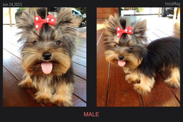 Yorkshire Terrier puppy available now, he is "Small" size and was born from Teacup dad and Toy mom, good coat, short legs, baby doll face and compact body.