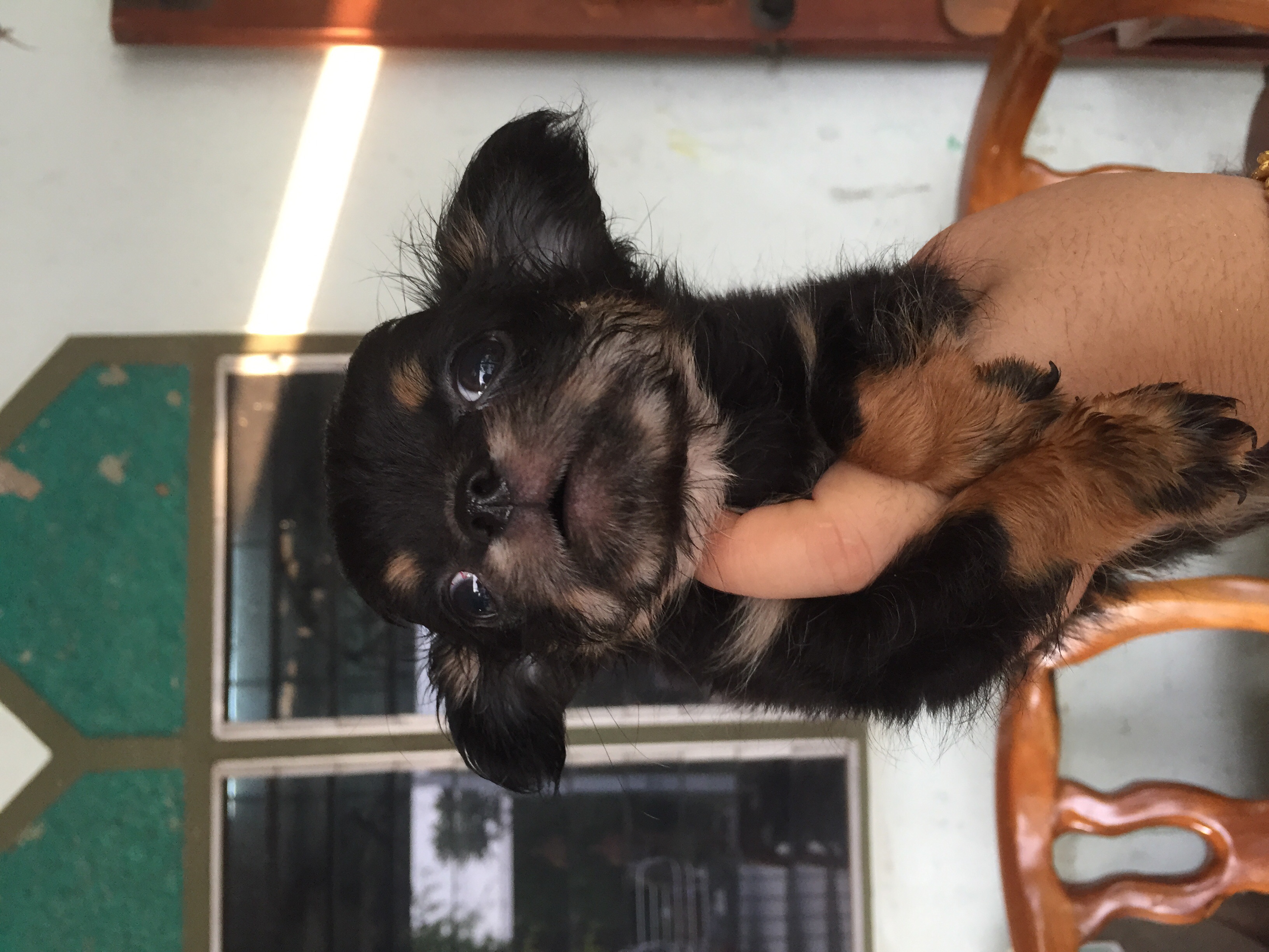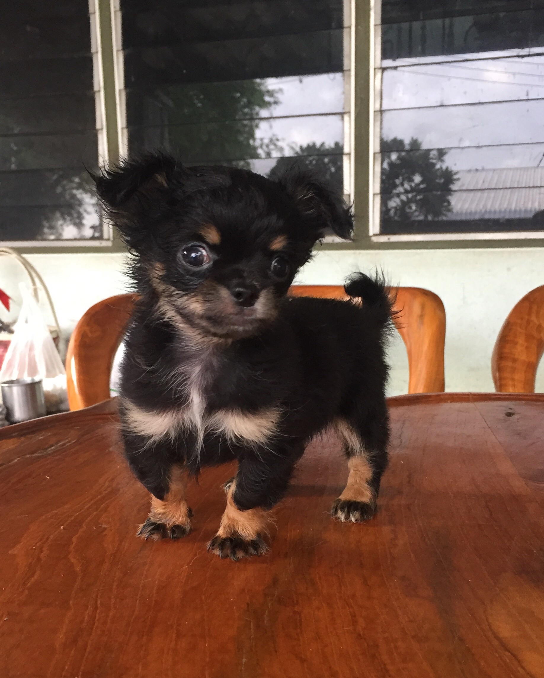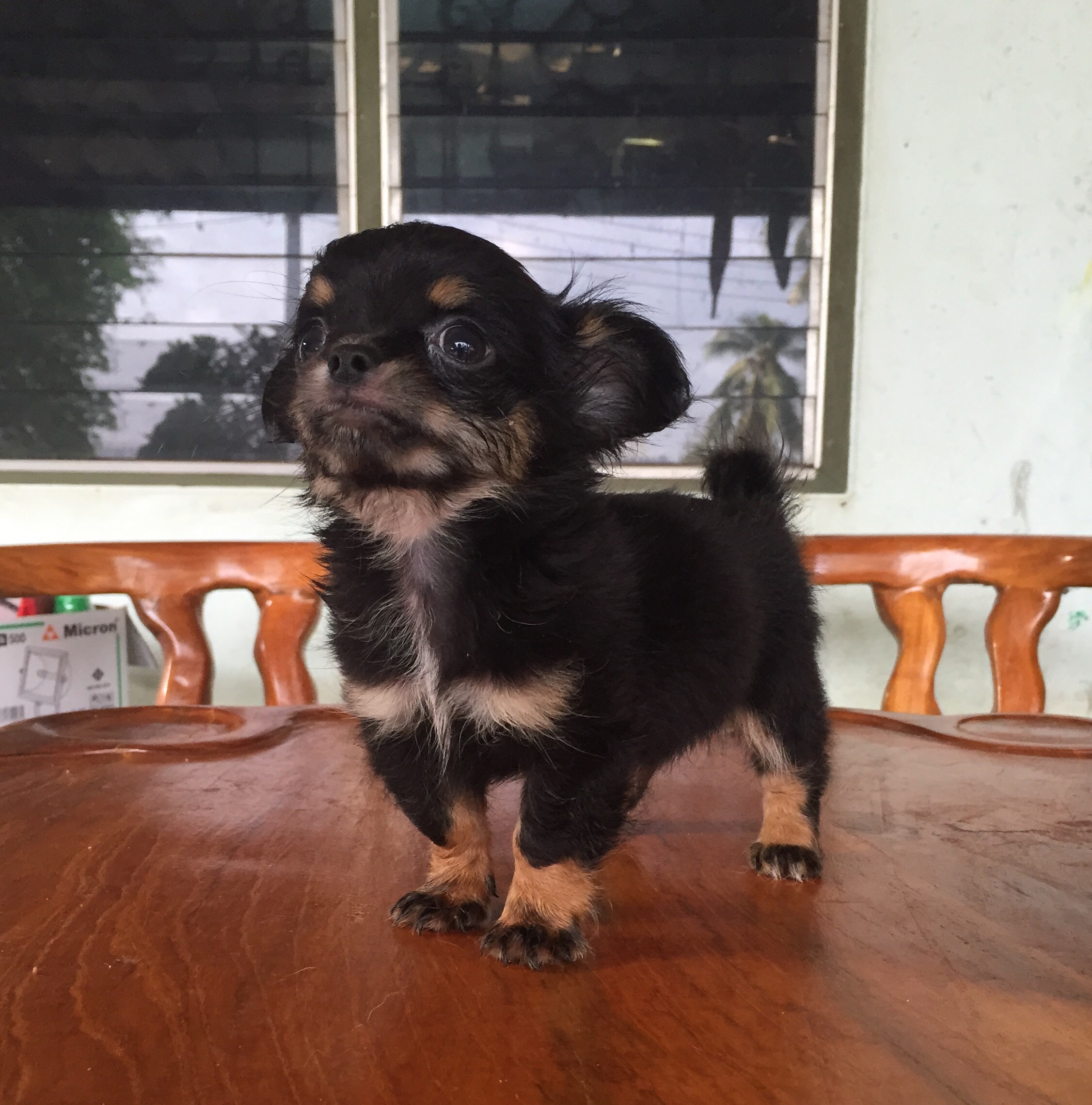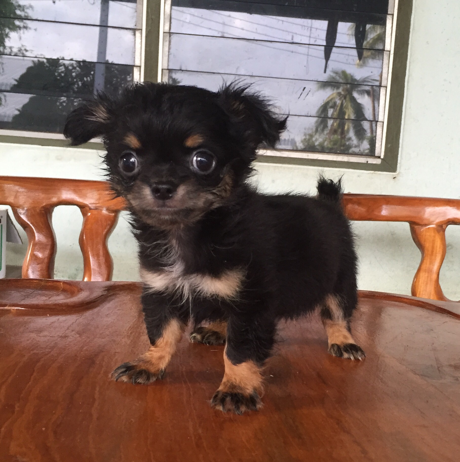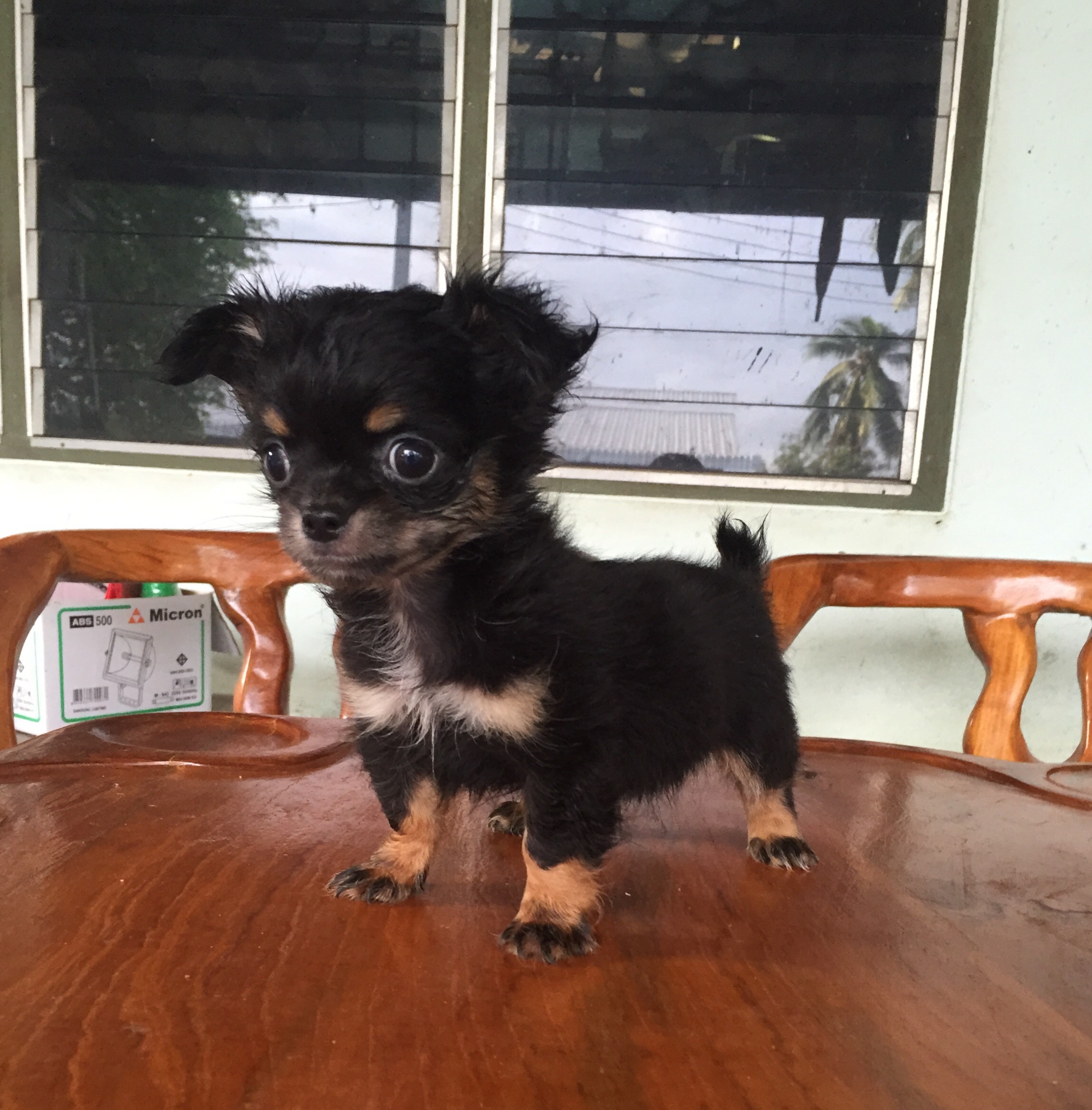ชิวาวาขนยาวเพศผู้สีดำมีคิ้วสาย พ่อสายลิตเติลปริ๊นแม่สายบอยชิวาวาทำวัคซีนถ่ายพยาธิแล้ว