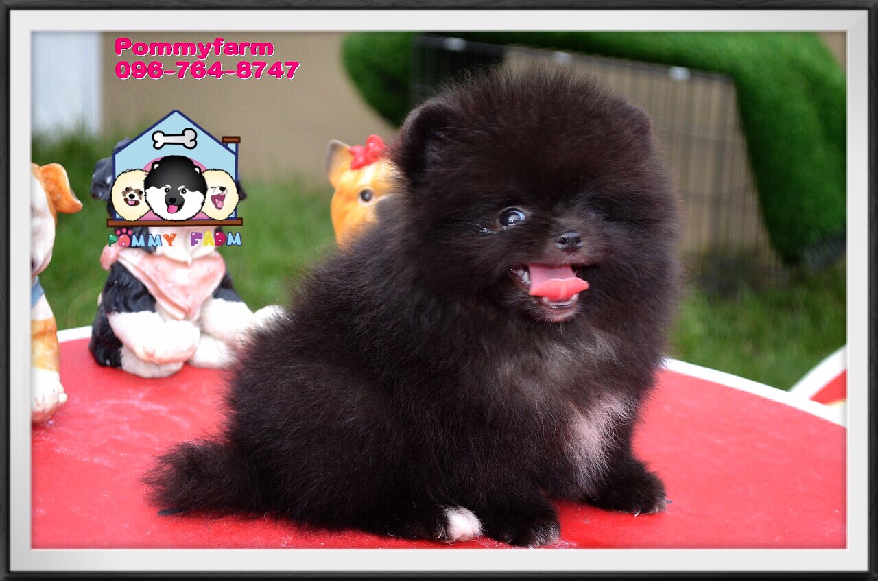จำหน่ายลูกปอมเมอเรเนียน สีดำ เพศผู้ หน้าหมี ขนแน่น ขาใหญ่ สนใจสอบถามได้