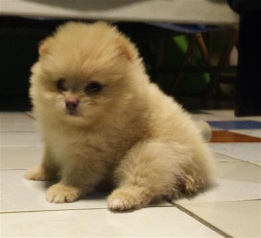 ปอมหน้าหมี สีน้ำตาลอ่อน อ้วนกลม อายุ 40 กว่าวัน