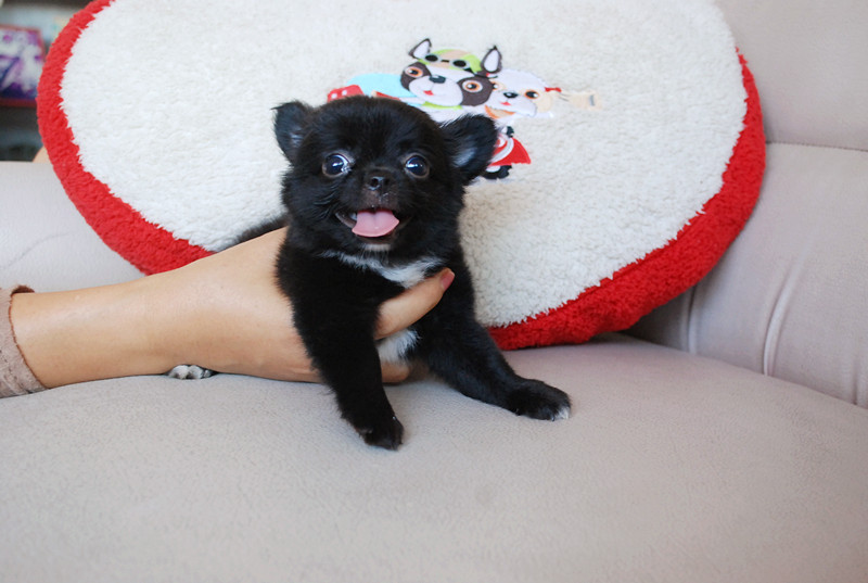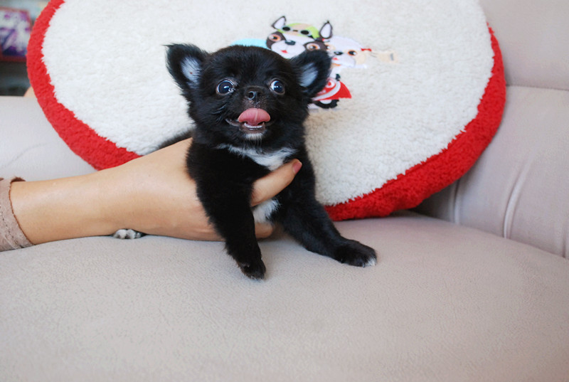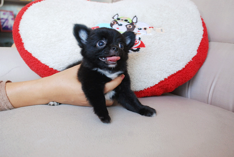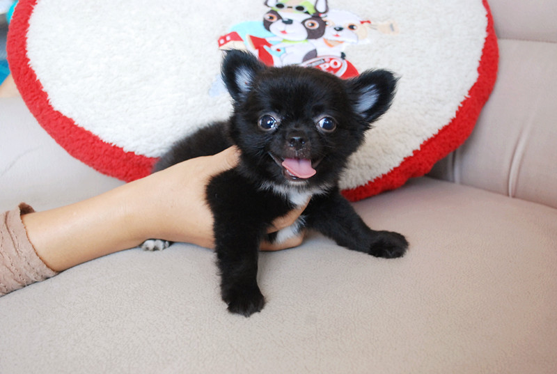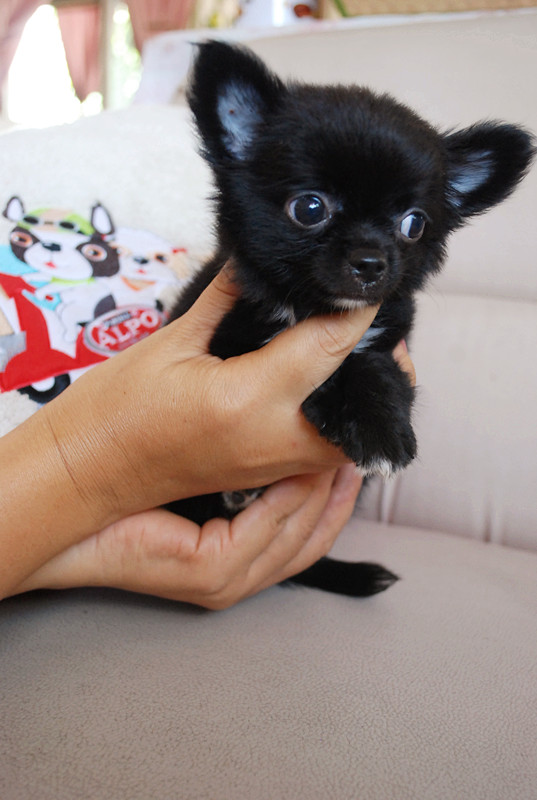 ขายลูกชิวาวาขนยาวสีดำขนแน่นๆ สายช็อค มีเครา อกขาว หัวโต ไซส์เล็ก หน้าแบ๊ว