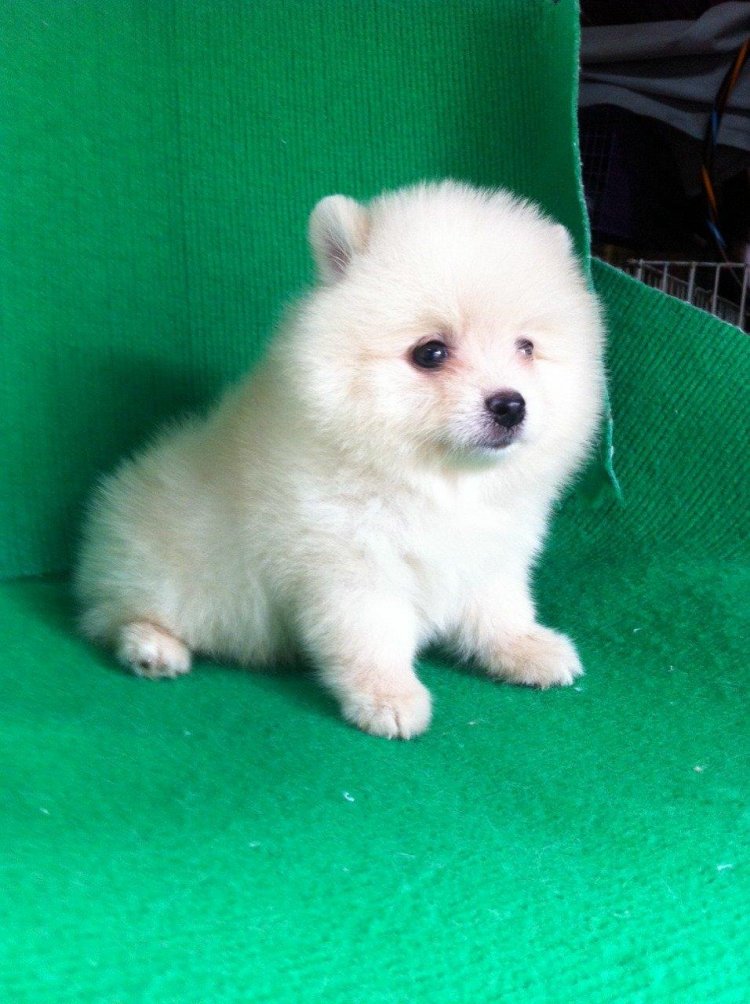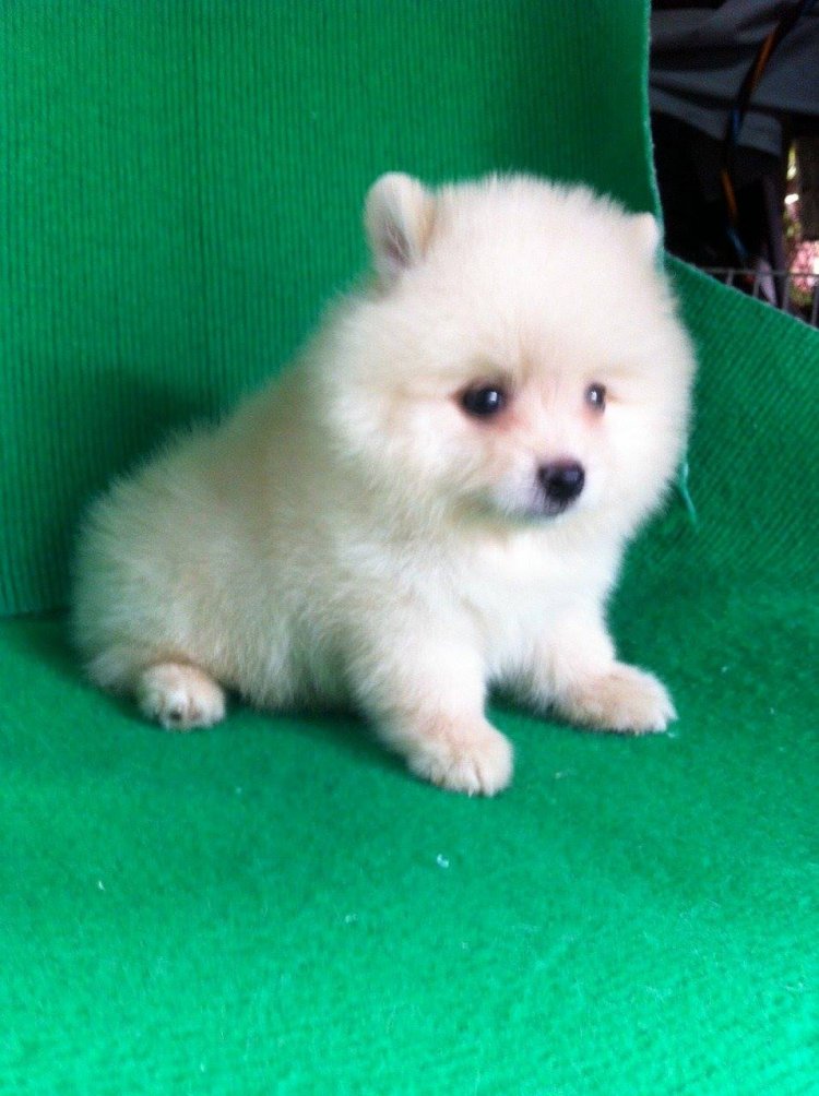 ขายลูกปอมหน้าหมีตัวผู้สีขาวครืม 1 ตัวครับ ลูกหมาที่บ้านเลิ้ยงเองครับ
