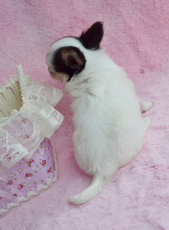 ★^-^*★ WWW.WOWWCHIHUAHUA.COM★^-^*★.... "น้องวันใหม่" เพศเมียขนยาวสีขาวชอคโกแลต มาร์กกิ้งโมเช่