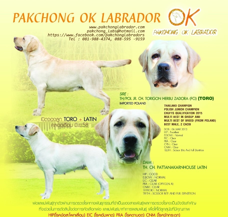 สำหรับท่านที่สนใจ สามารถติดต่อสอบถามเข้ามาได้เลยนะครับ และทางคอก PAKCHONG OK LABRADOR ของเรายังมีแม่พันธุ์อีกหลายตัวให้ท่านได้ตัดสินใจนะครับ
