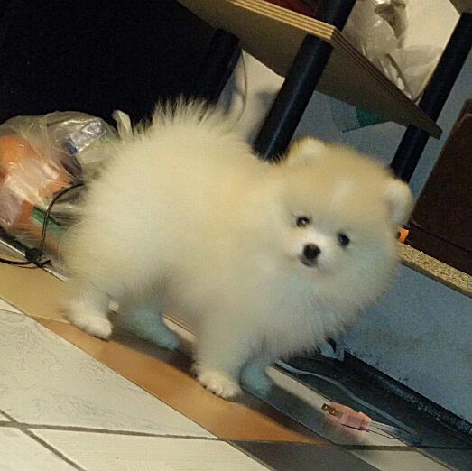 น้องปอมหน้าหมี สีขาวครีม เพศผู้ ขนฟูฟู ขาใหญ หน้าสั้น เกิด 5 เมษา วัคซีนแล้ว