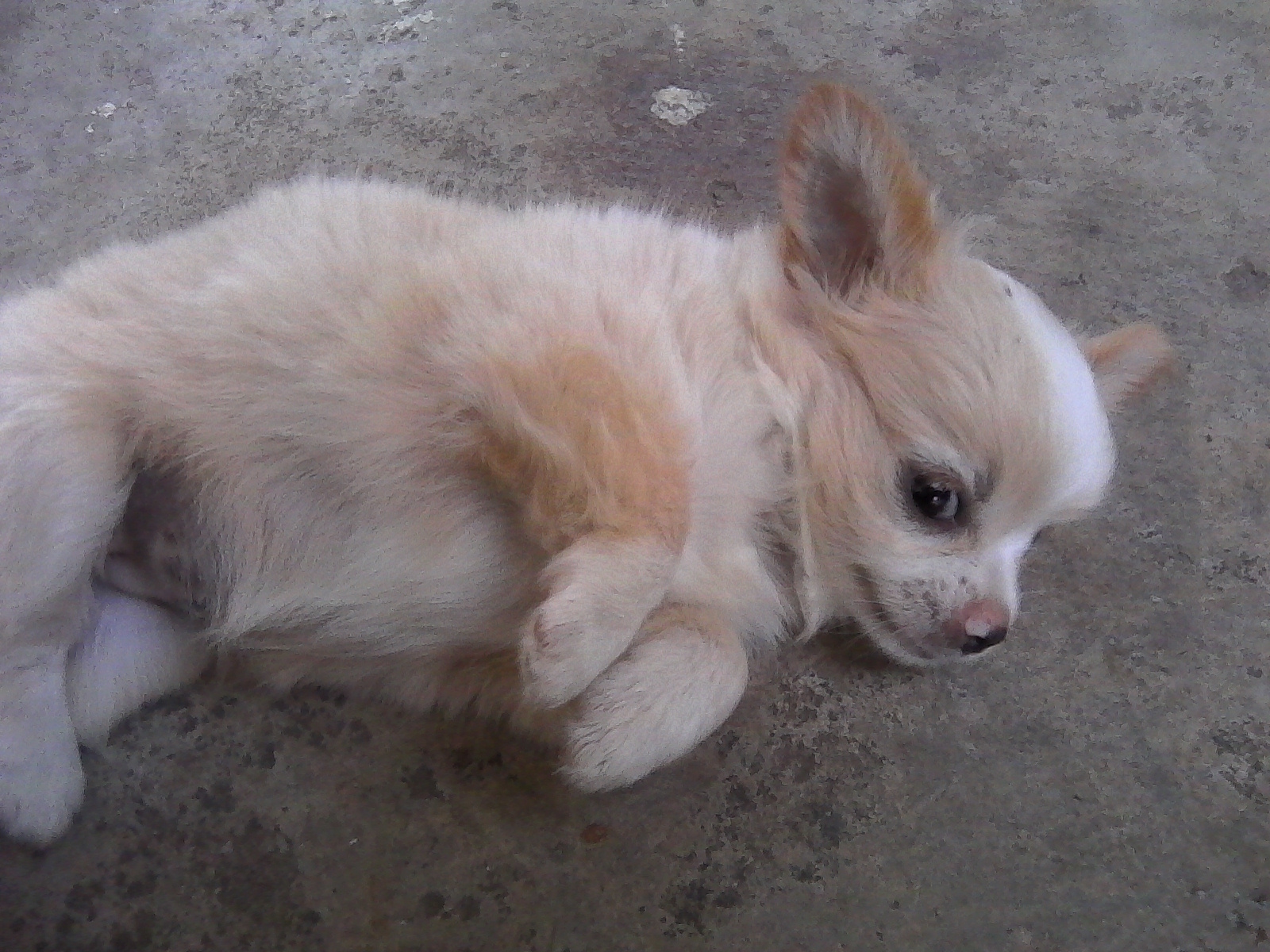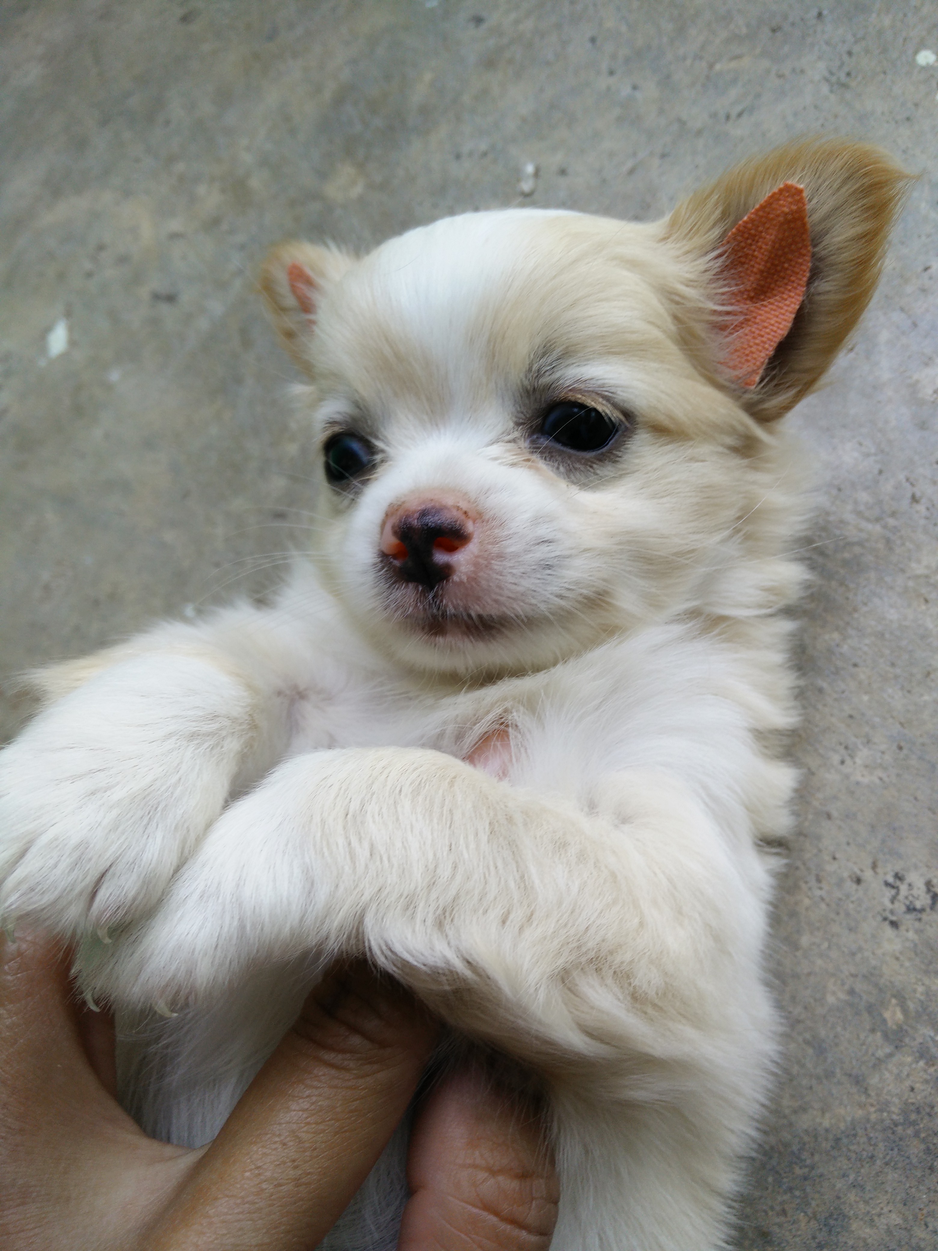 น้องหมาเพศเมียสีขาวครีมขนฟูยาวมากมากราคา4500บาทอยู่สุพรรณบุรี083-4261142