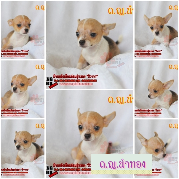 5. ด.ญ. นำทอง ชิวาวาเพศเมีย ขนสั้น สีน้ำตาล- ขาว มีใบเพ็ด