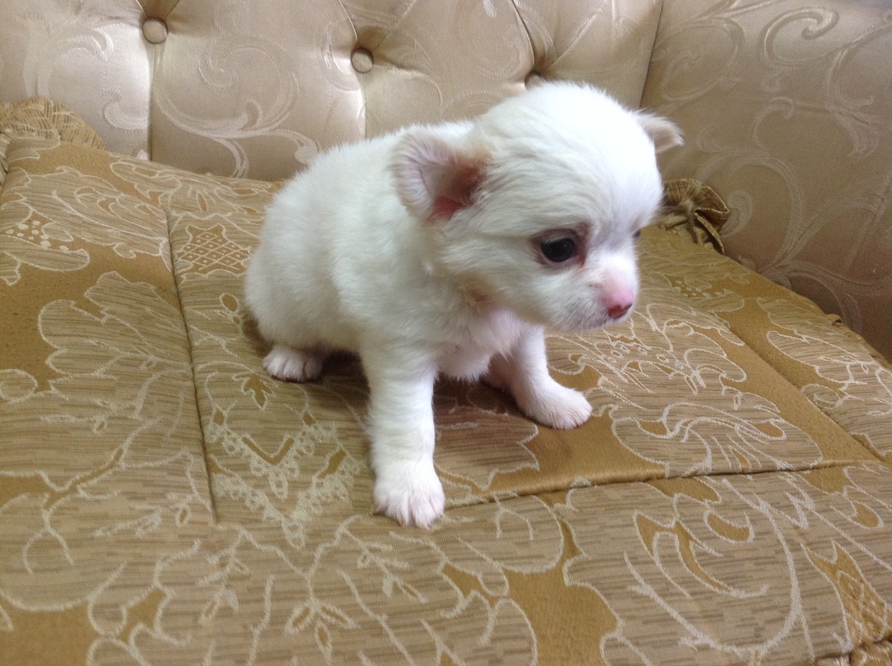 ขายลูกชิวาวาขนยาวสีขาวเพศเมีย อายุ40วันนนนน