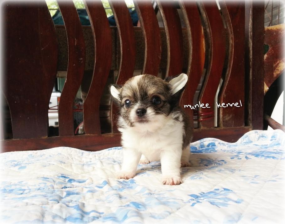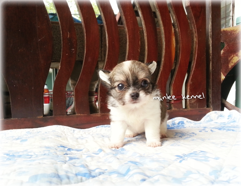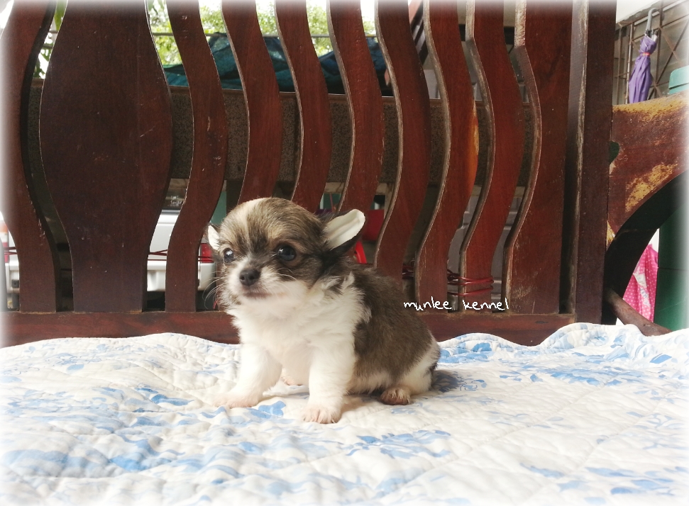 ชิวาวา ขนยาว หนานุ่ม สี ขาว&น้ำตาล