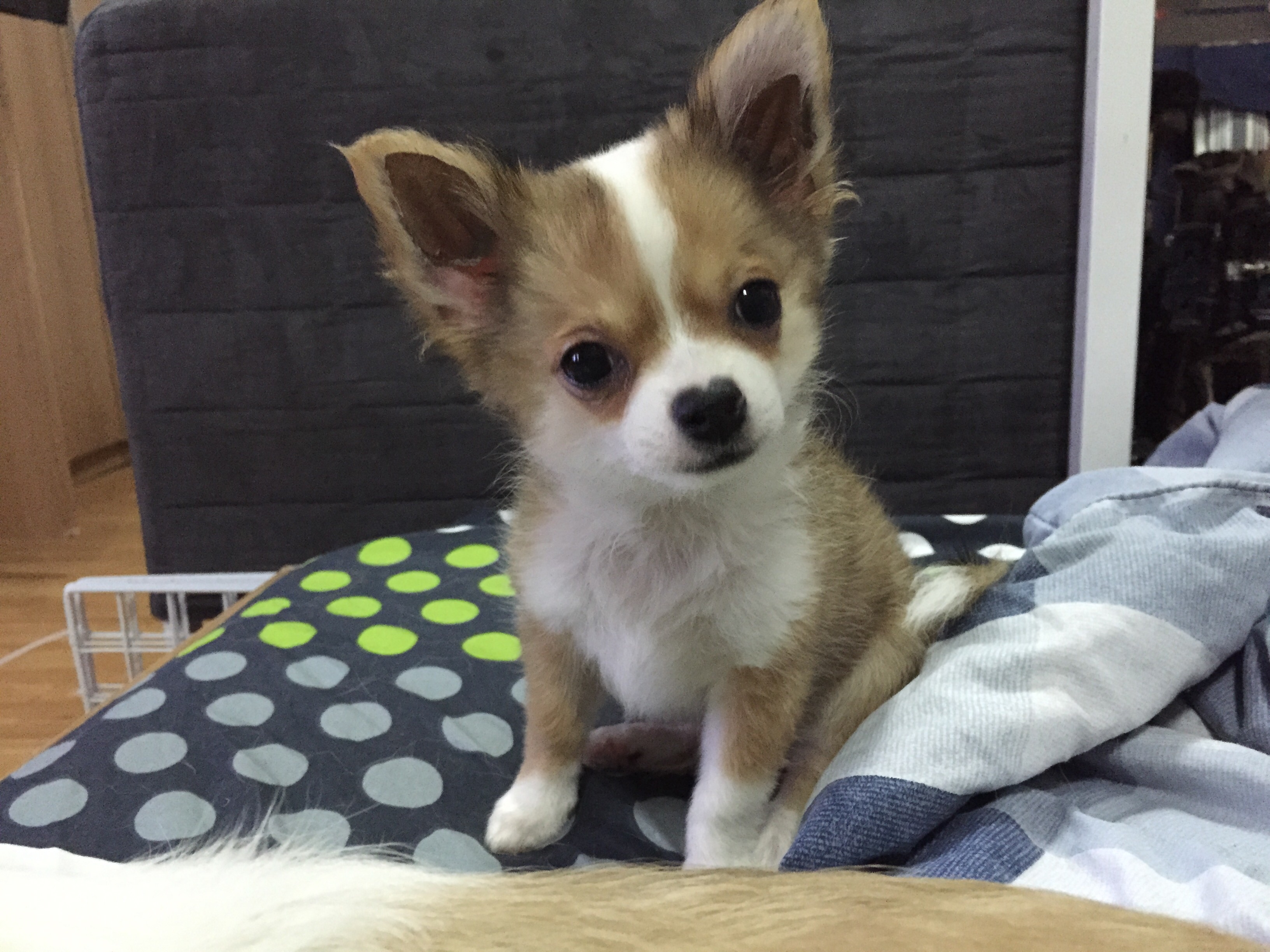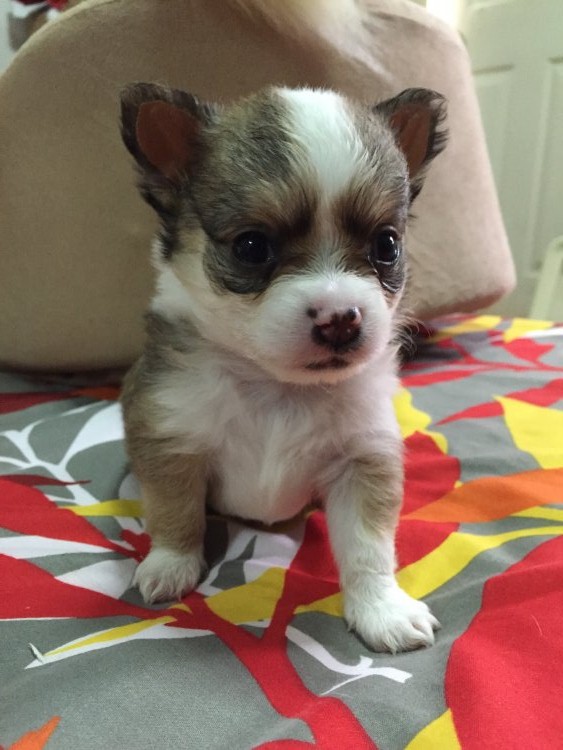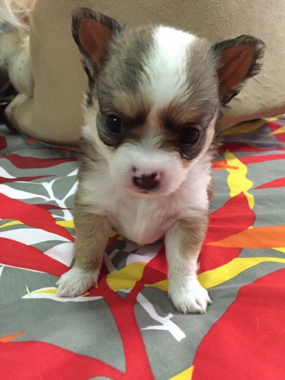 คุณชาย ชิวาว่าลองโค้ทสายพันธ์แท้ สองสี พ้อยสวย (น้ำตาล-ขาว) เพศผู้