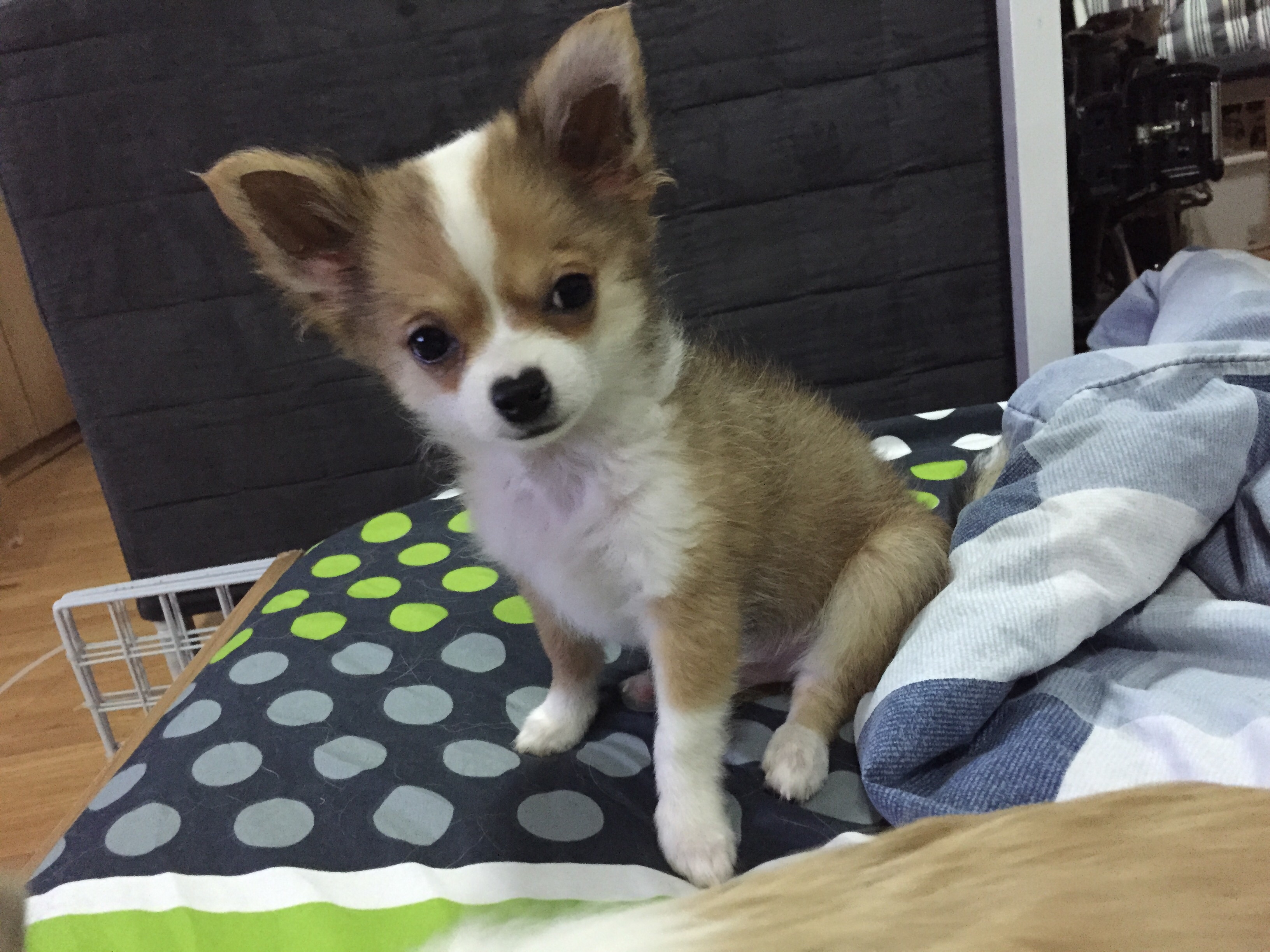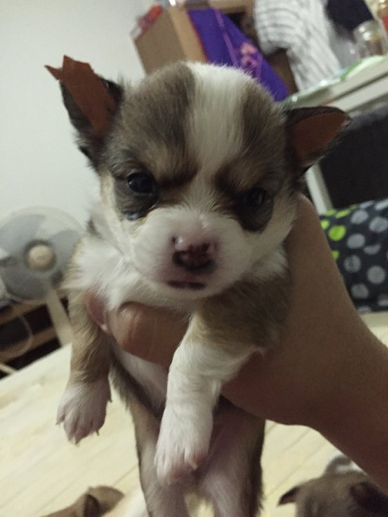 น้องคุณชาย ชิวาว่าลองโค้ทสายพันธ์แท้ สองสี (น้ำตาล-ขาว) เพศผู้ อายุ 2 เดือน ดามหูแล้ว พร้อมย้ายบ้าน