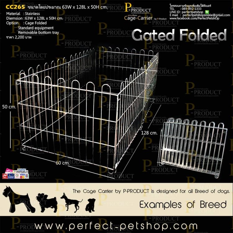คอกสนามสเตนเลสแบบ 4 เหลี่ยมผืนผ้าพับเก็บได้ รหัสสินค้า CC265 ขนาดเส้นผ่านศูนย์กลางเมื่อกลางออกแล้ว 63ก x 128ย x 50ส cm. ราคา 2,200 บาท คอกสเตนเลสขนาดกลาง เหมาะกับ TOY DOGS เช่น Chihuahau , Jack Russell , Pekingese , Pug , West Highland , Shihtzu Pomeranian , Miniature หรือสัตว์เลี้ยงขนาดเล็กทุกชนิดกรงสัตว์เลี้ยงคุณภาพ