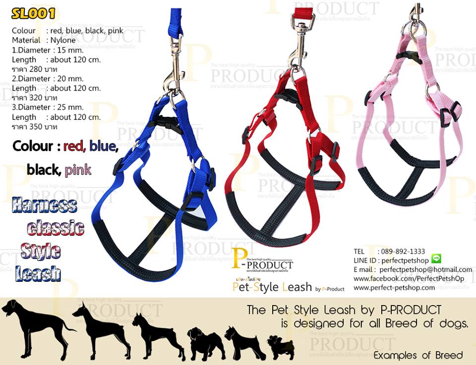 รหัสสินค้าSL001 Harness Classic Style Leash สายจูงพร้อมชุดรัดอก มีให้เลือก 4 สี 3 ขนาด