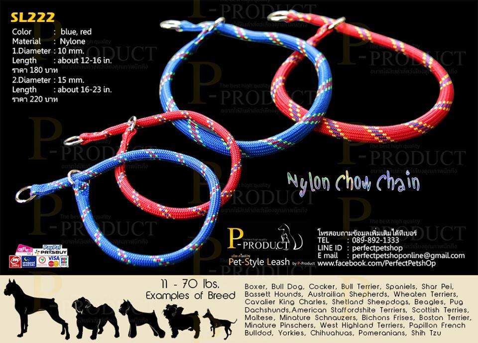 รหัสสินค้าSL222 Nylon Chow Chain ปลอกคอกระตุกฝึกสุนัขอเนกประสงค์ มีให้เลือก 2 ขนาด