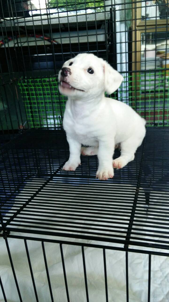 ขาวเกือบหมดมีแต้มตรงหูหน่อยตามรูปครับ เพศเมียโครงสร้างดี สุขภาพแข็งแรง ฉีดวัคซีน-ถ่ายพยาธิแล้ว เกิด22เม.ย.