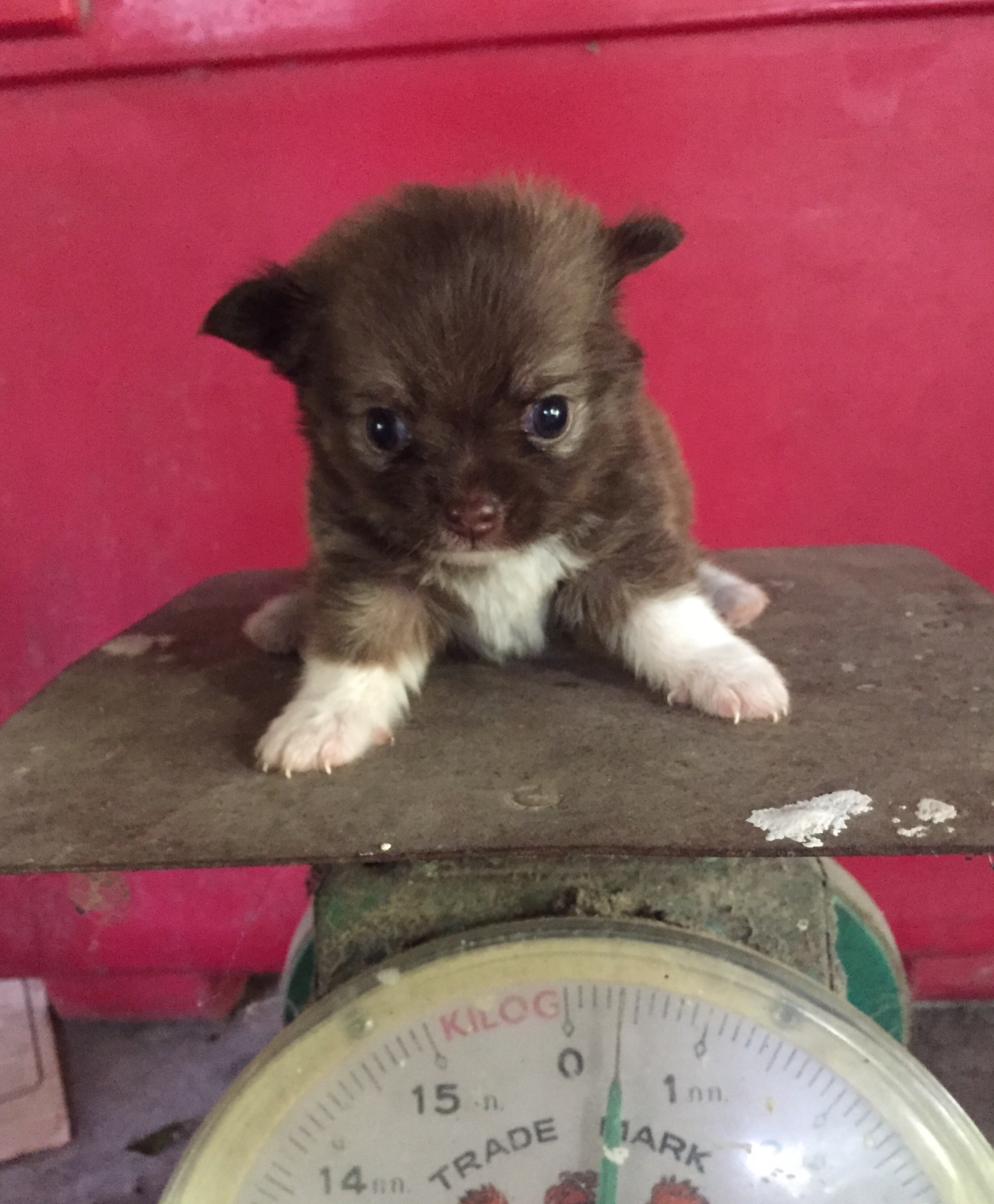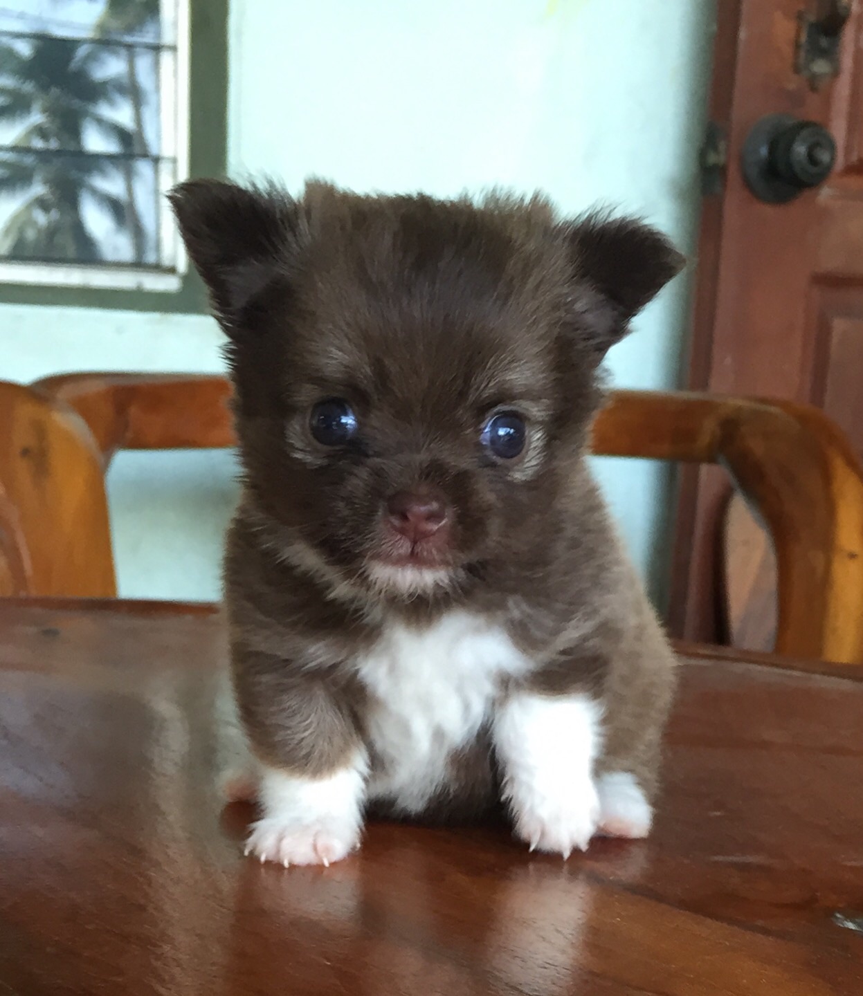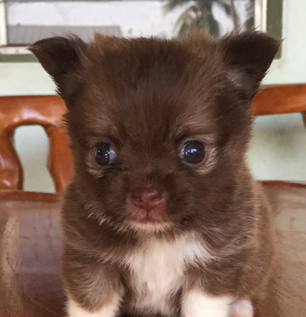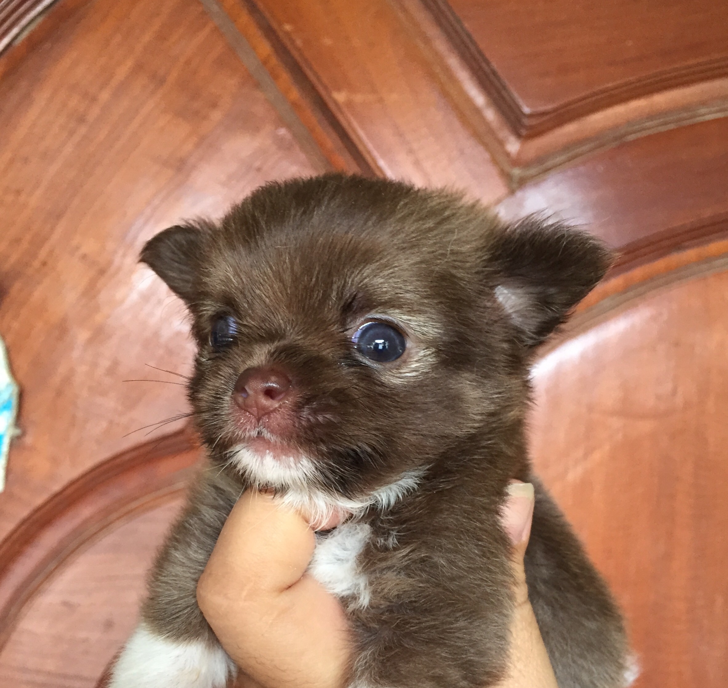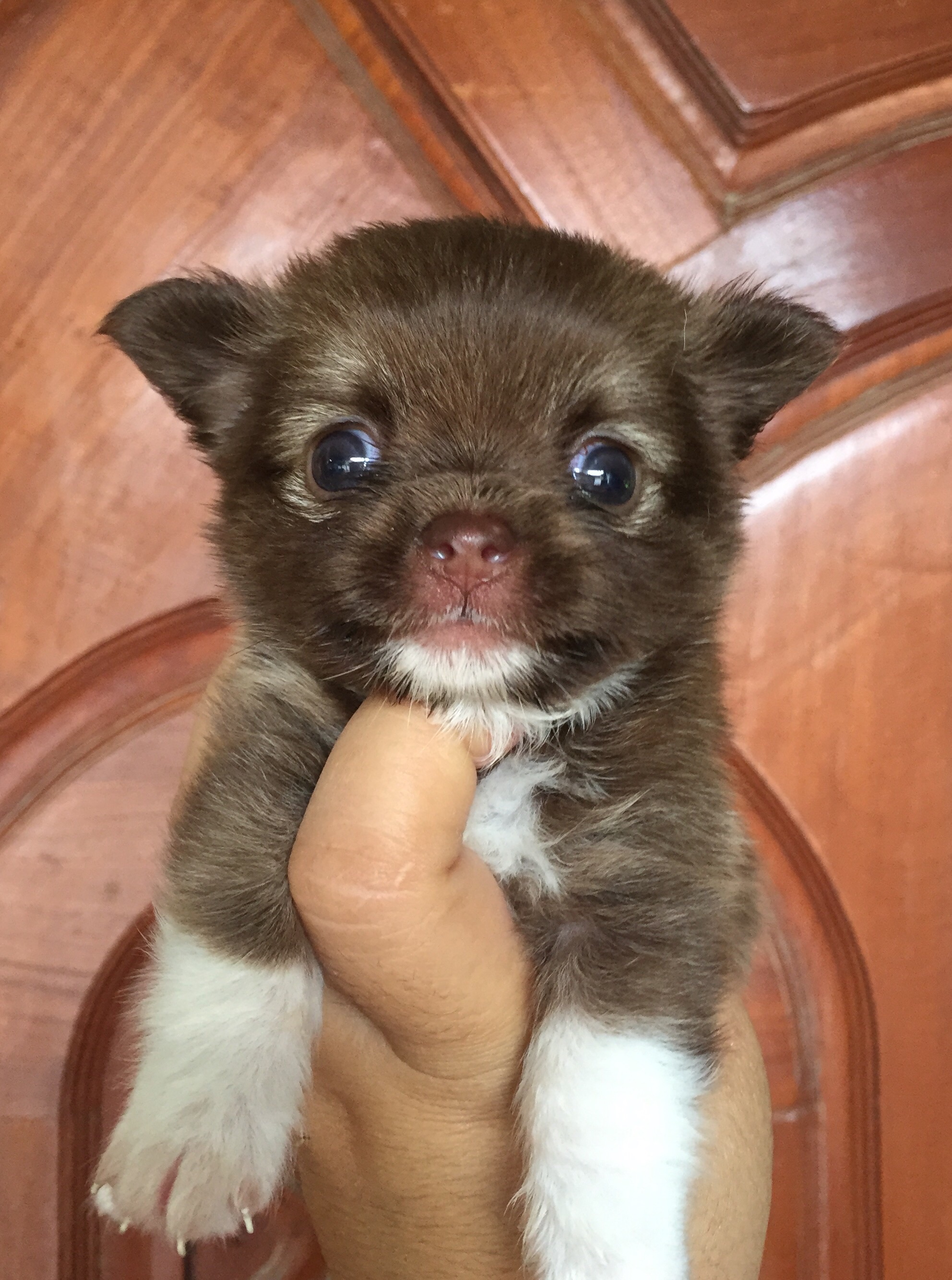 ชิวาวาขนยาวเพศเมียไซร์เล็กสีชอค นน.4ขีด