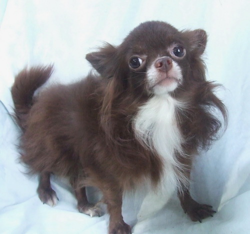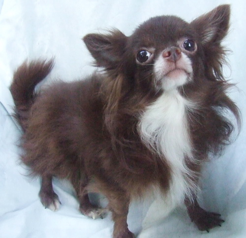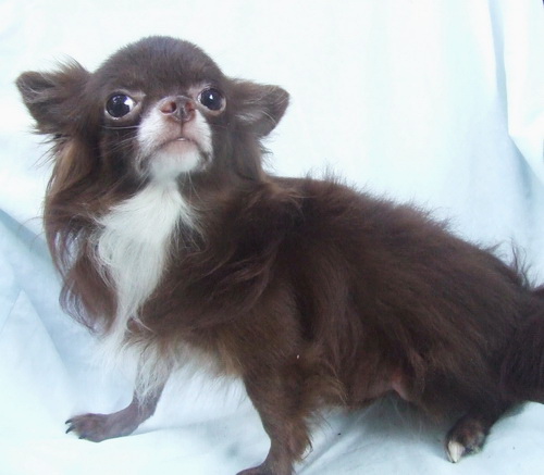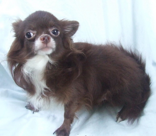 ชิวาวาเพศผู้ขนยาว ช็อคเข้ม อายุ 3 ปี ราคา 12,000 (ชื่อยูโร)