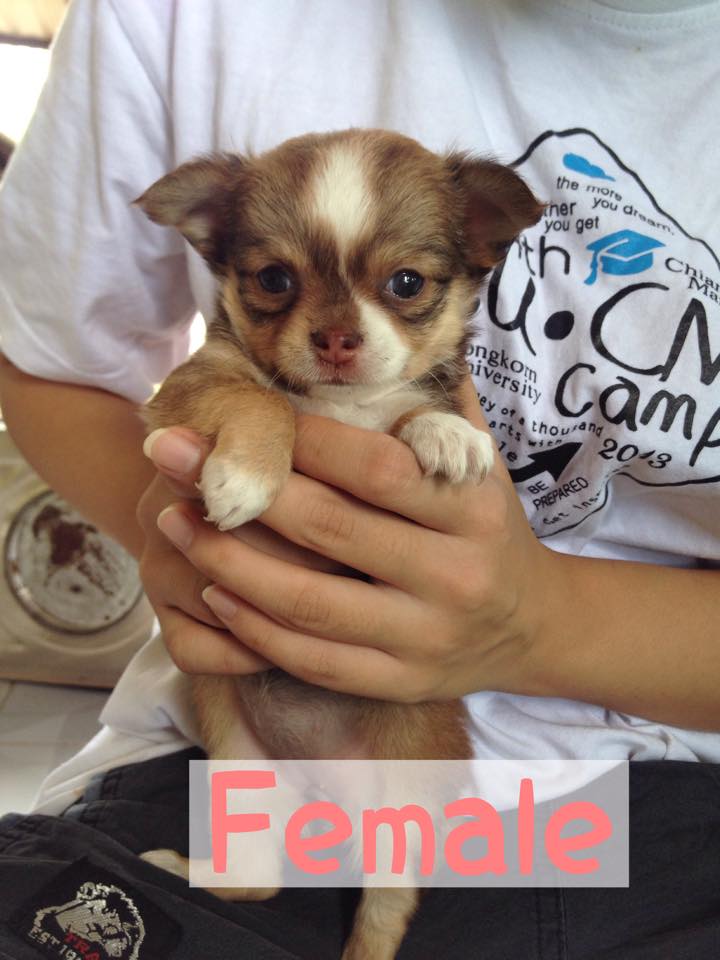 ขายลูกชิวาว่าขนยาว เมีย สีน้ำตาล ขี้เล่น ร่าเริง ราคา 3,900 บาท น้องอยู่เชียงใหม่ มีบริการจัดส่งทางเครื่องบิน