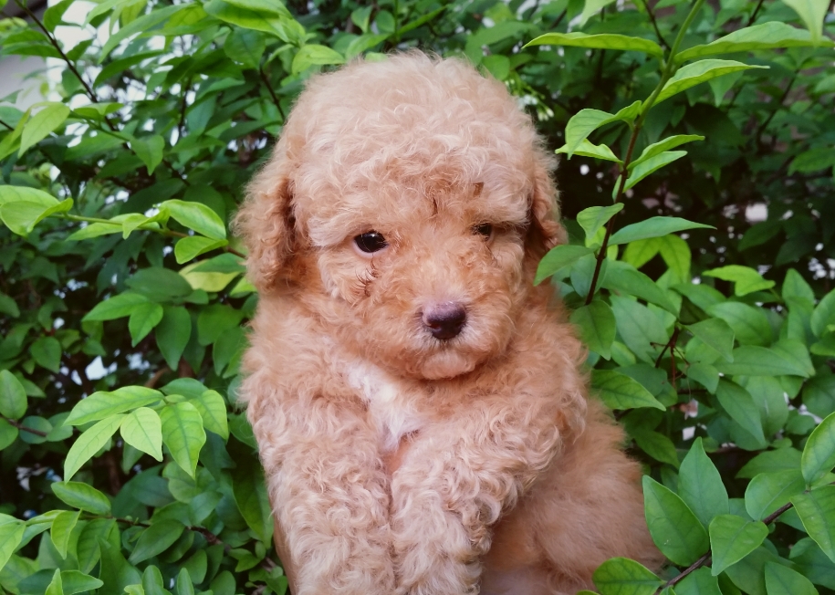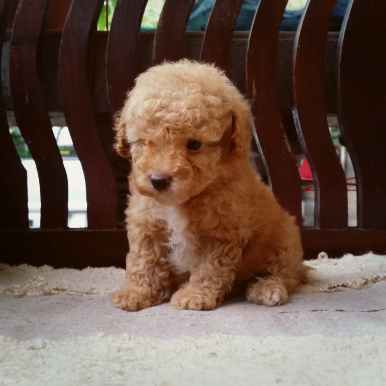 ดญ. หมูแดง^^พุดเดิ้ล หน้าตุ๊กตา สีแอปปิคอท ขนแน่น หยิกอายุเดือนกว่า เพศเมีย แข็งแรง