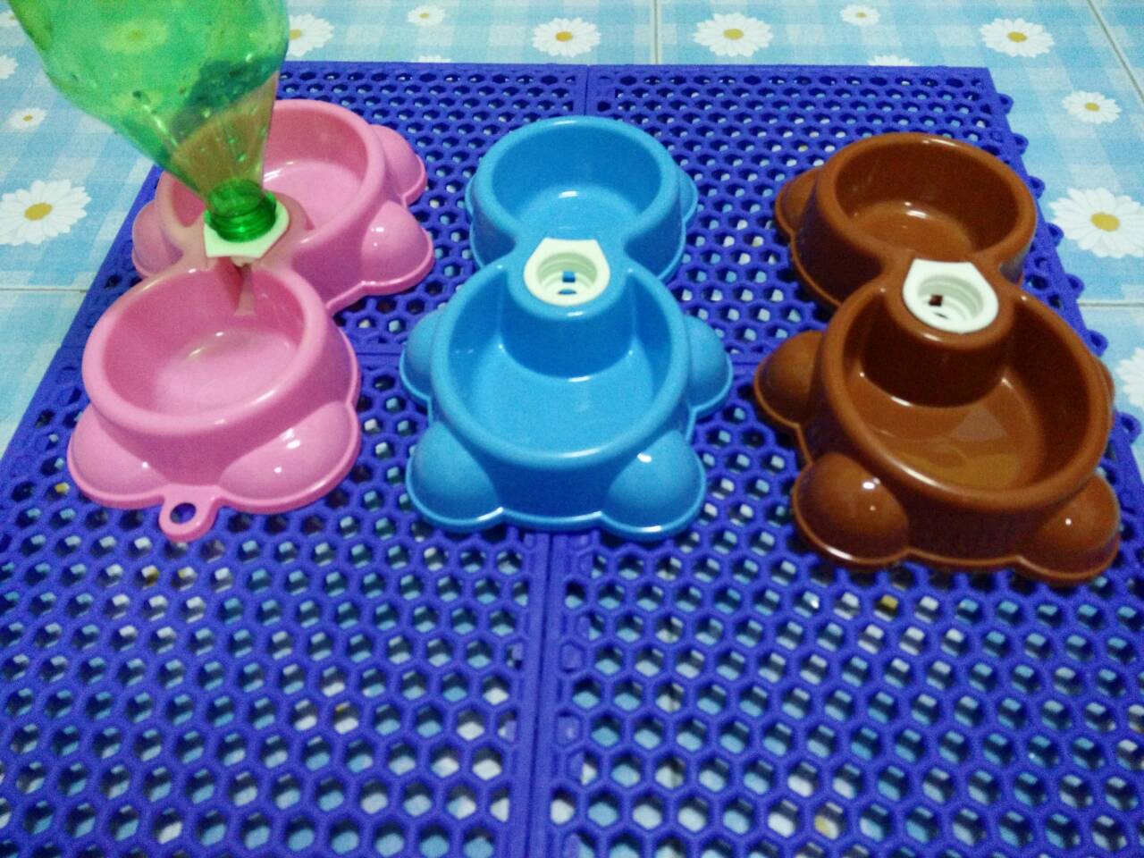ถาดให้อาหารและน้ำสัตว์เลี้ยง สามารถใช้ขวดน้ำ เล็กหรือใหญ่ก็ได้จ้า เป็นถาดรูปหมีสุดน่ารักเลยจ้า