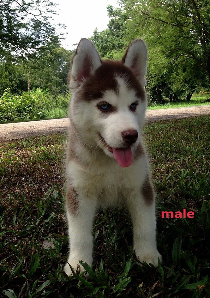 น้องหมาไซบีเรียน เพศผู้ สีคอปเปอร์ ตาฟ้าคู่ น่าตาน่ารัก โครงสร้างดี ราคาไม่แพง