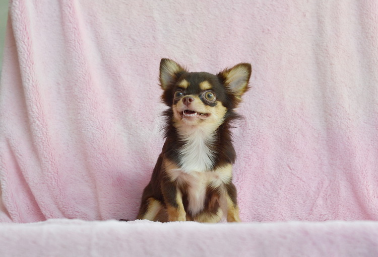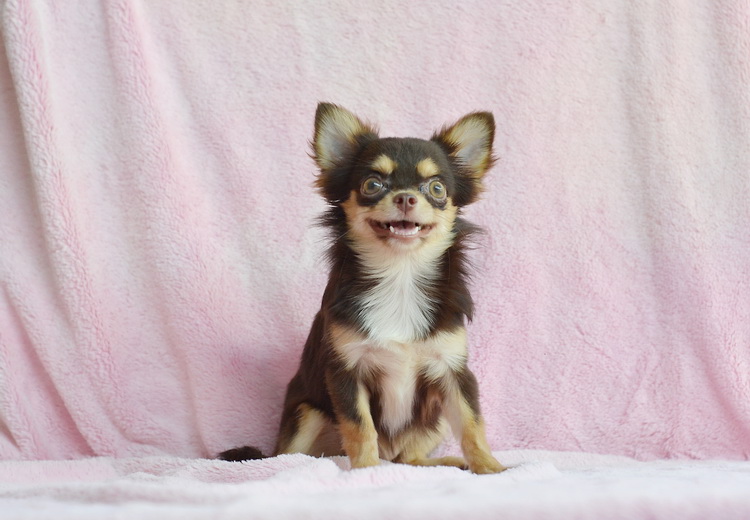 ชิวาวาสาวขนยาวสีชอคโกแลตแทนสายญี่ปุ่น อายุ 8 เดือน หน้าสั้นสวย มาร์กสวย มีใบเพดสมาคม