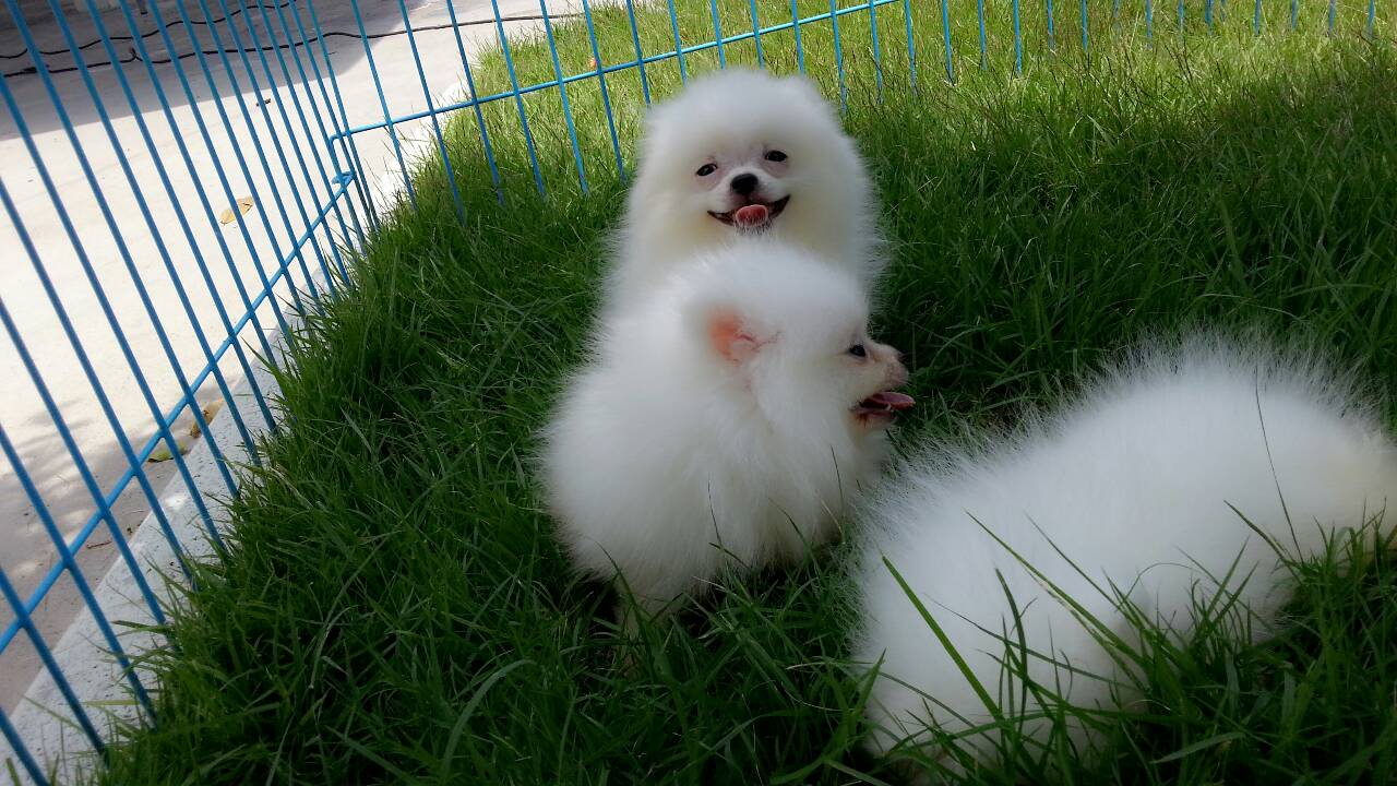 ขายลูกปอมสีขาวเพสเมียและเพศผู้