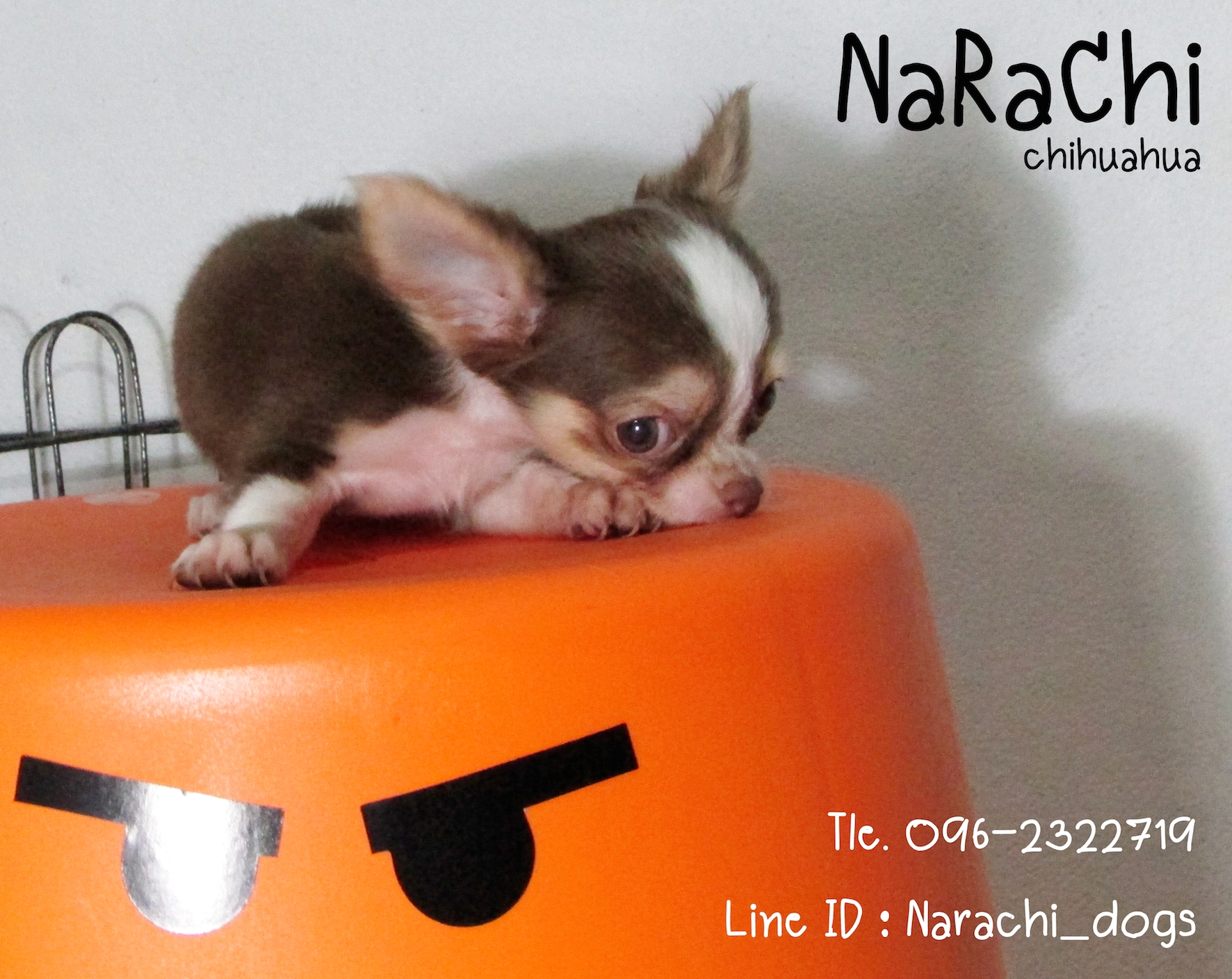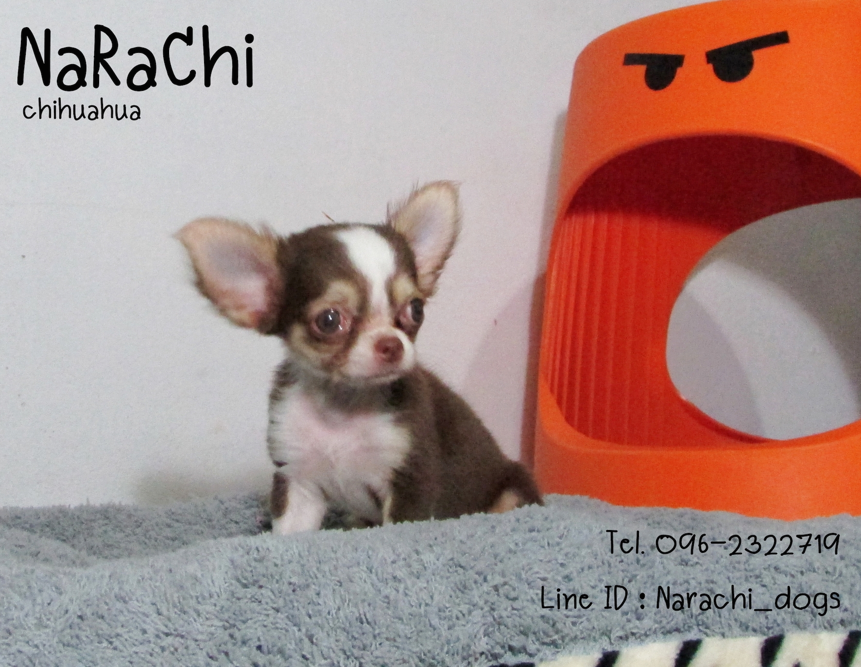 ชิวาวา เพศเมีย สีช็อค-ขาว คิ้วขาว มาร์กกิ้งขาว ถุงเท้าขาว ตาสีเทา **ยินดีรับบัตรเครดิต