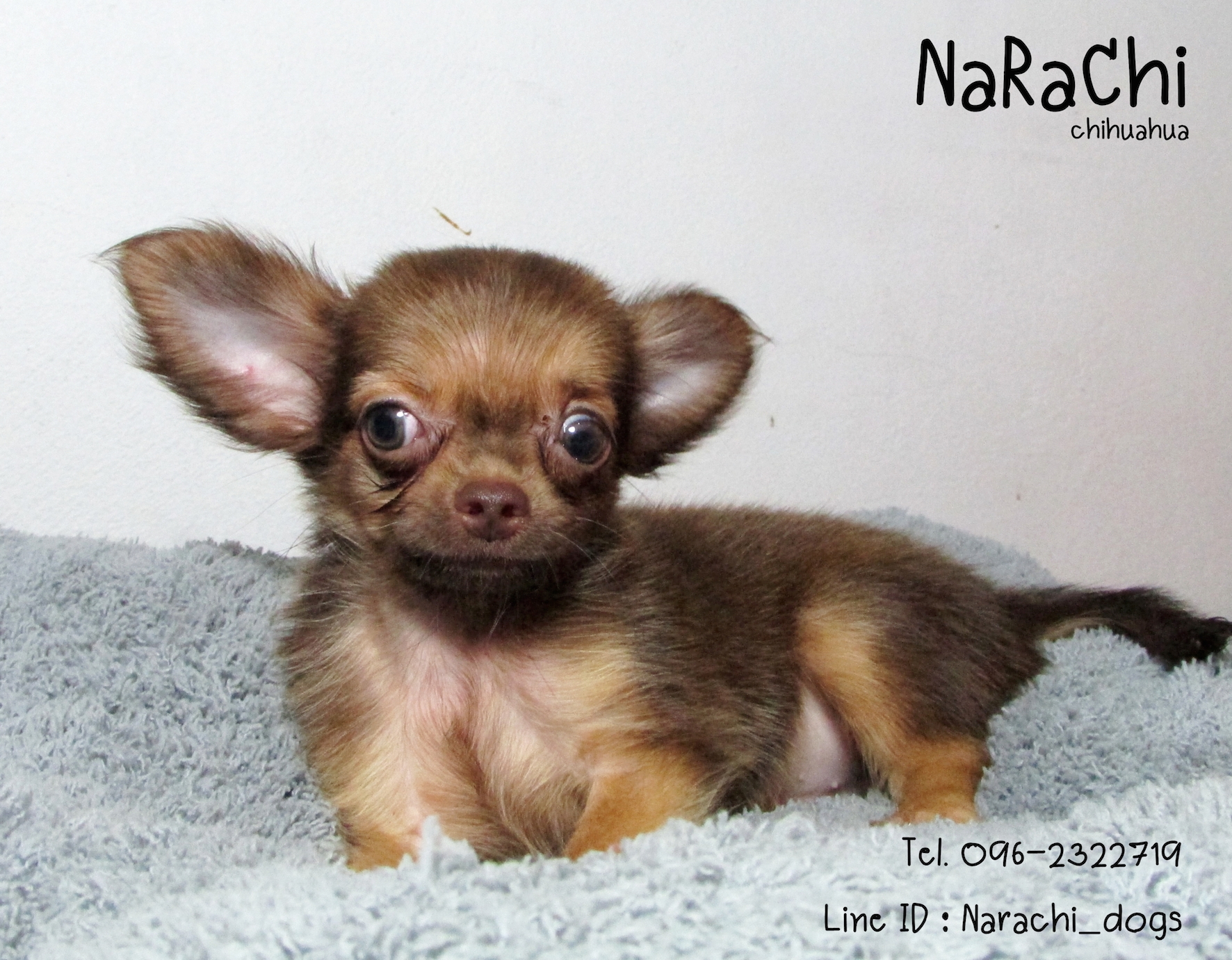 ชิวาวา เพศผู้สีช็อค ขนยาว ตาสีเทา **ยินดีรับบัตรเครดิต