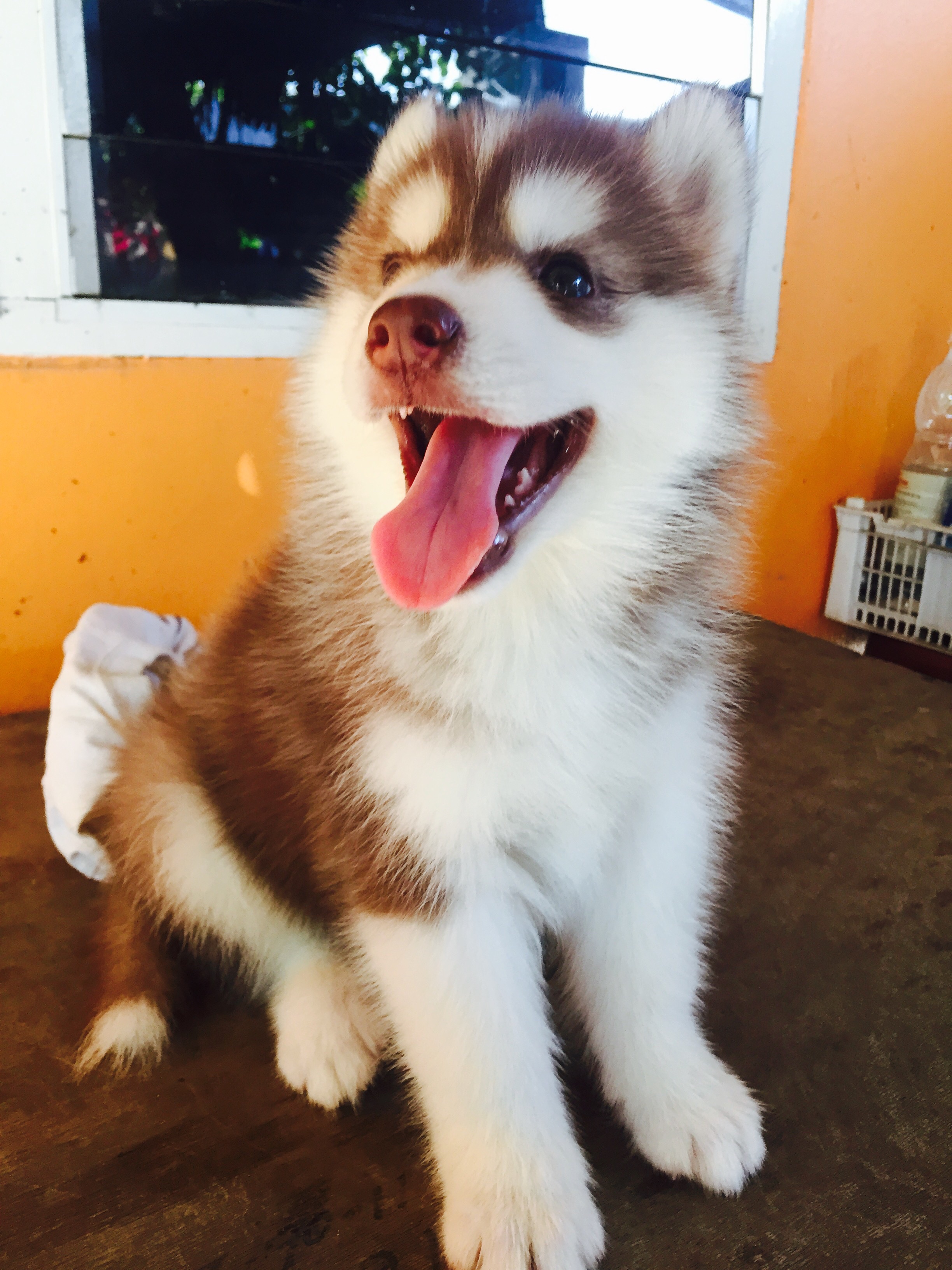 ลูกไซบีเรียน เพศเมีย ตาสีน้ำตาลทั้ง2ข้าง อายุ45วัน ใบเพ็ดดิกรีเต็มใบ