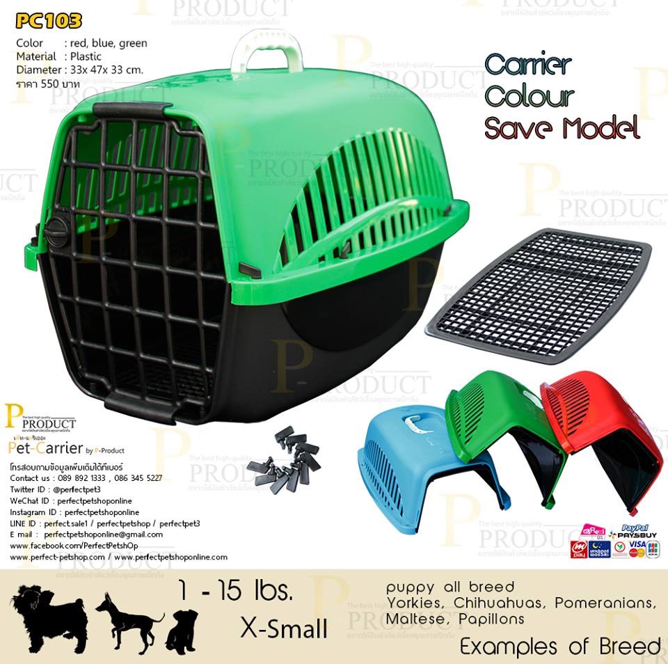 รหัสสินค้า PC 103 กล่องเดินทางสัตว์เลี้ยงขนาด Small ขนาด 33ก x 47ย x 33ส cm. ราคา 550 บาท เหมาะกับสุนัขขนาดเล็ก เช่น แมว ลูกสุนัข หรือสุนัขขนาดเล็ก Puppy or Chihuahau,Jack Russell,Pekingese,Pug,West Highland,Pomeranianหรือสัตว์เลี้ยงขนาดเล็กถึงขนาดกลางทุกชนิด หรือสัตว์เลี้ยงที่มีขนาดเหมาะสมทุกชนิด กล่องเดินทางสัตว์เลี้ยงคุณภาพจาก P-PRODUCT