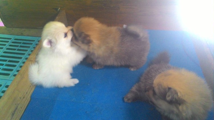 ขายลูกหมาปอมบ้าน เกิด 19 / 06 / 58 เมีย 1 สี แดง ผู้ 2