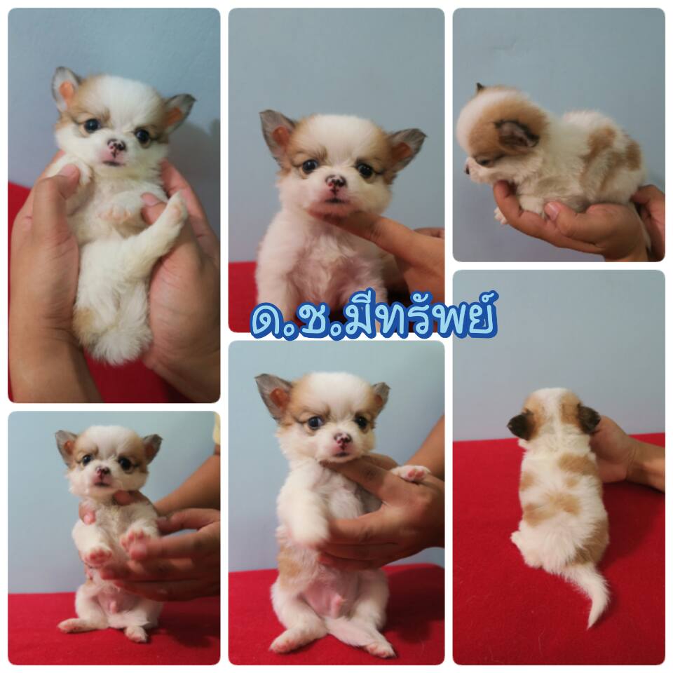 ด.ช. มีทรัพย์ ชิวาวาเพศผู้ขนยาว ขาวน้ำตาล 6500