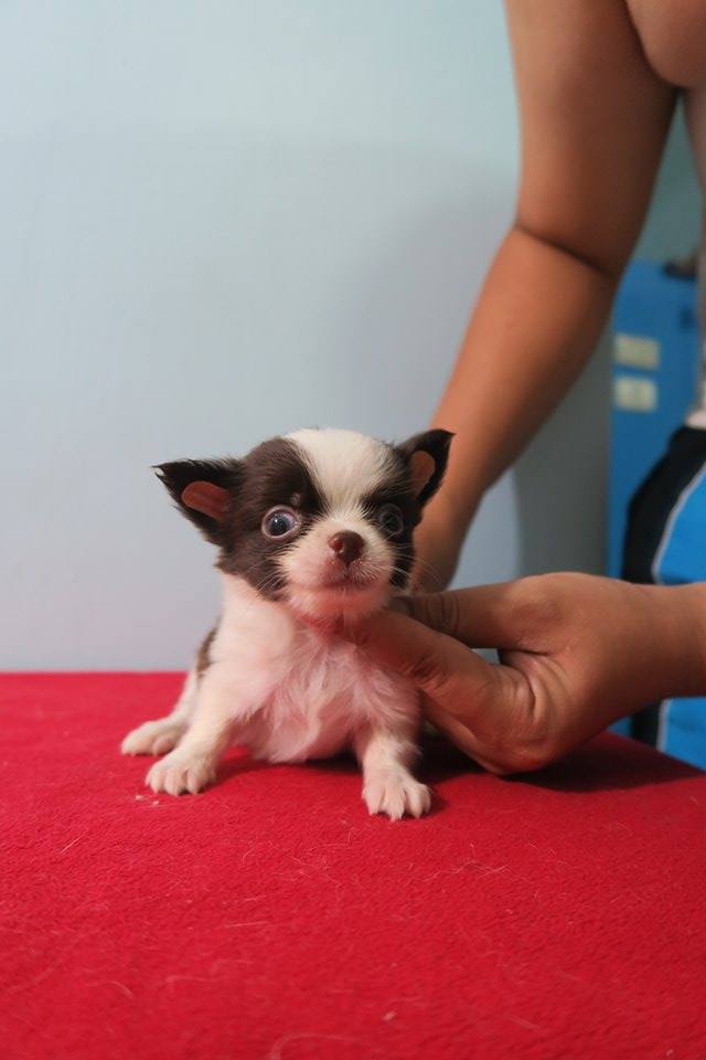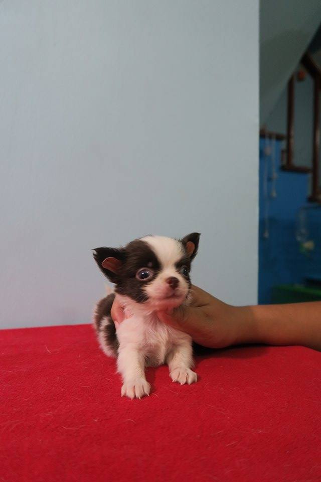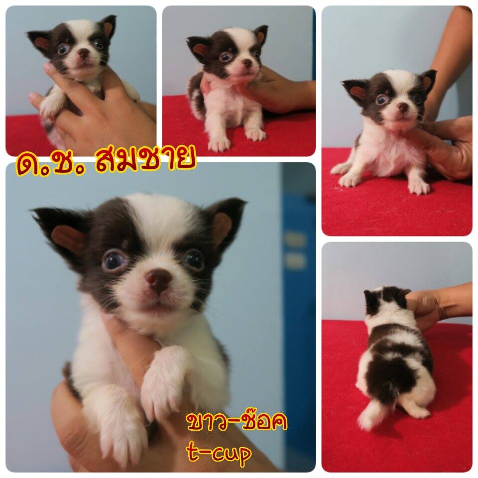ด.ช. สมชาย ชิวาวาเพศผู้ขนยาว สีขาว ช๊อค ไซส์ทีคัพ 8000