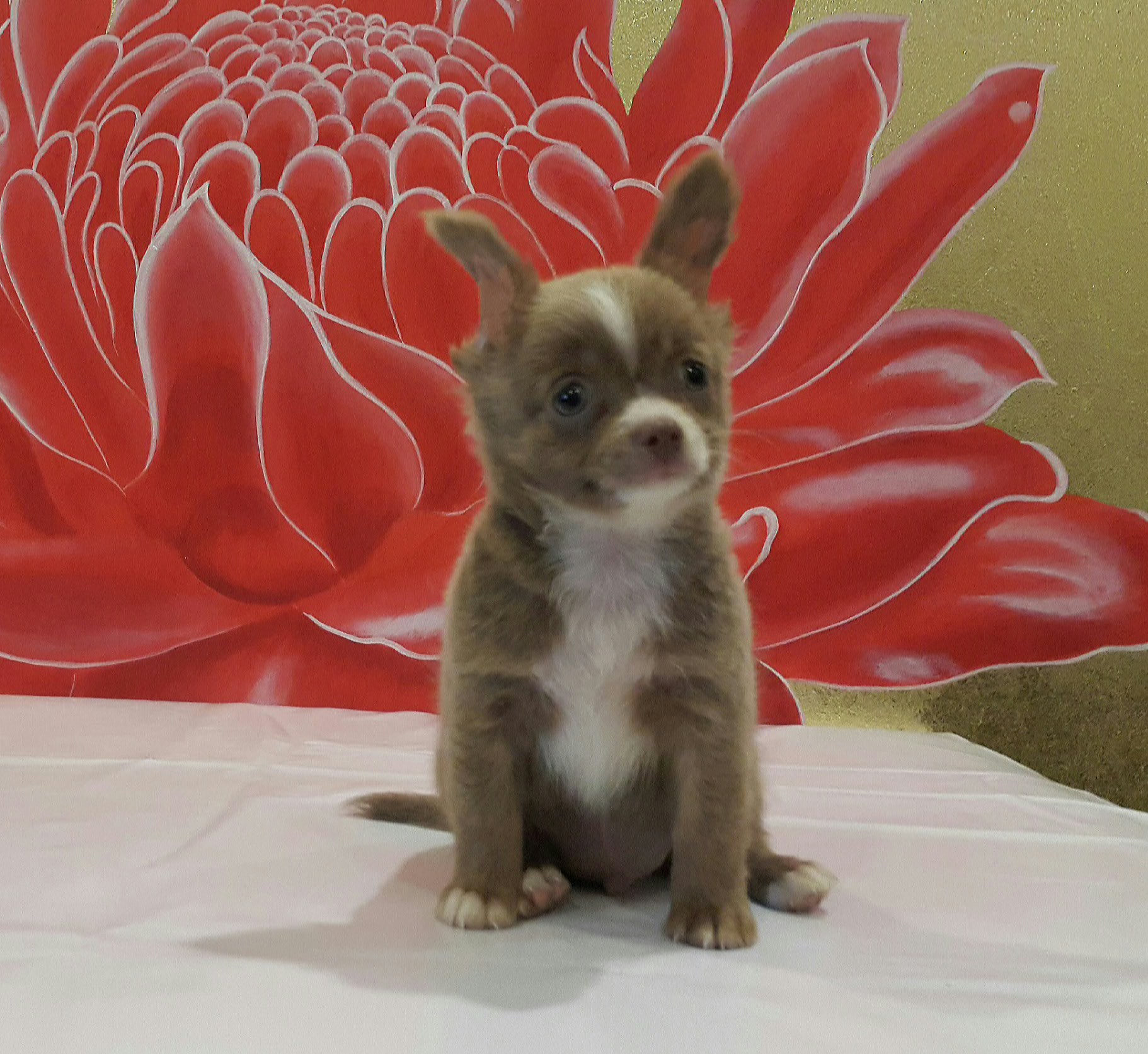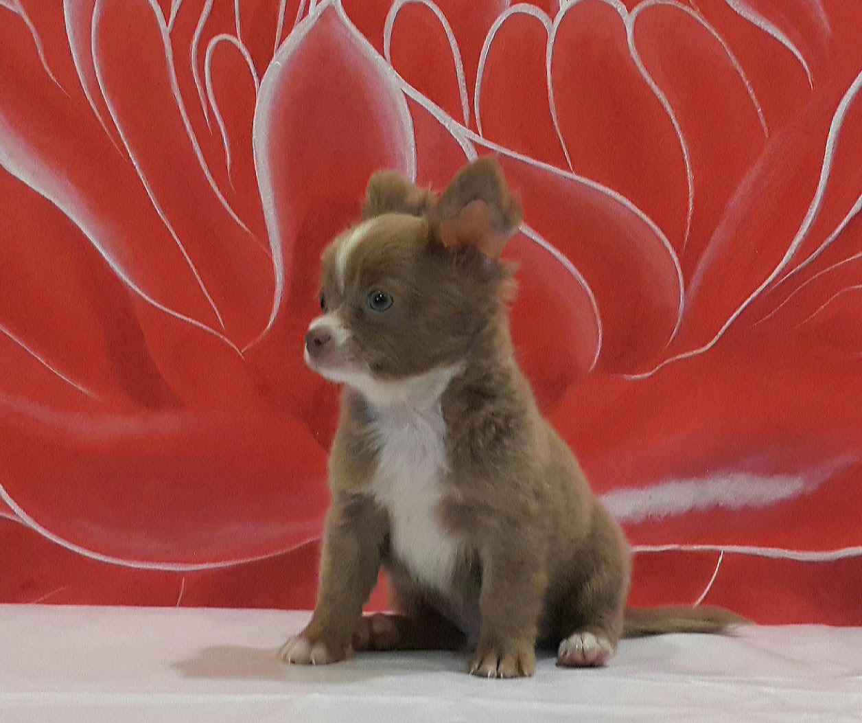 ชิวาวาขนยาว สีบลู/ขาว - สีสวาท เพศผู้