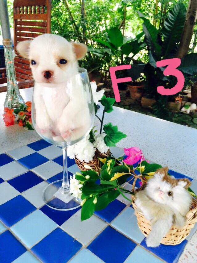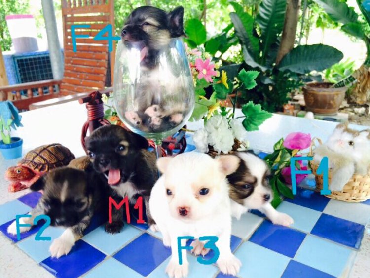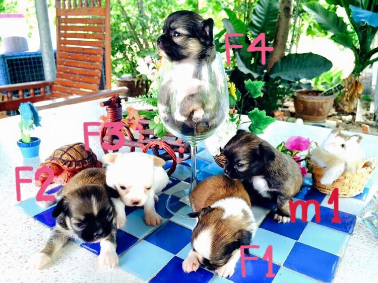 ลูกสุนัขชิวาว้า ขนยาว หน้าสั้น กระโหลกกำลังดี ใบหูกาง เป็นสามสี 4 ตัว ถุงเท้าครบ สีขาว 1 มีสีนวลแต้มใบหูและหน้า ตอนนี้สีกำลังเปลี่ยนสีเริ่มออก ตอนนี้อายุ 30 วัน เพศผู้ 1 เพศเมีย 4 ราคาเริ่มต้น 4900-8900 ต่อรองได้ ส่งให้ได้ในเขต นครปฐม กาญจนบุรี ราชบุรี สุพรรณ สนใจติดต่อ 080-6524801